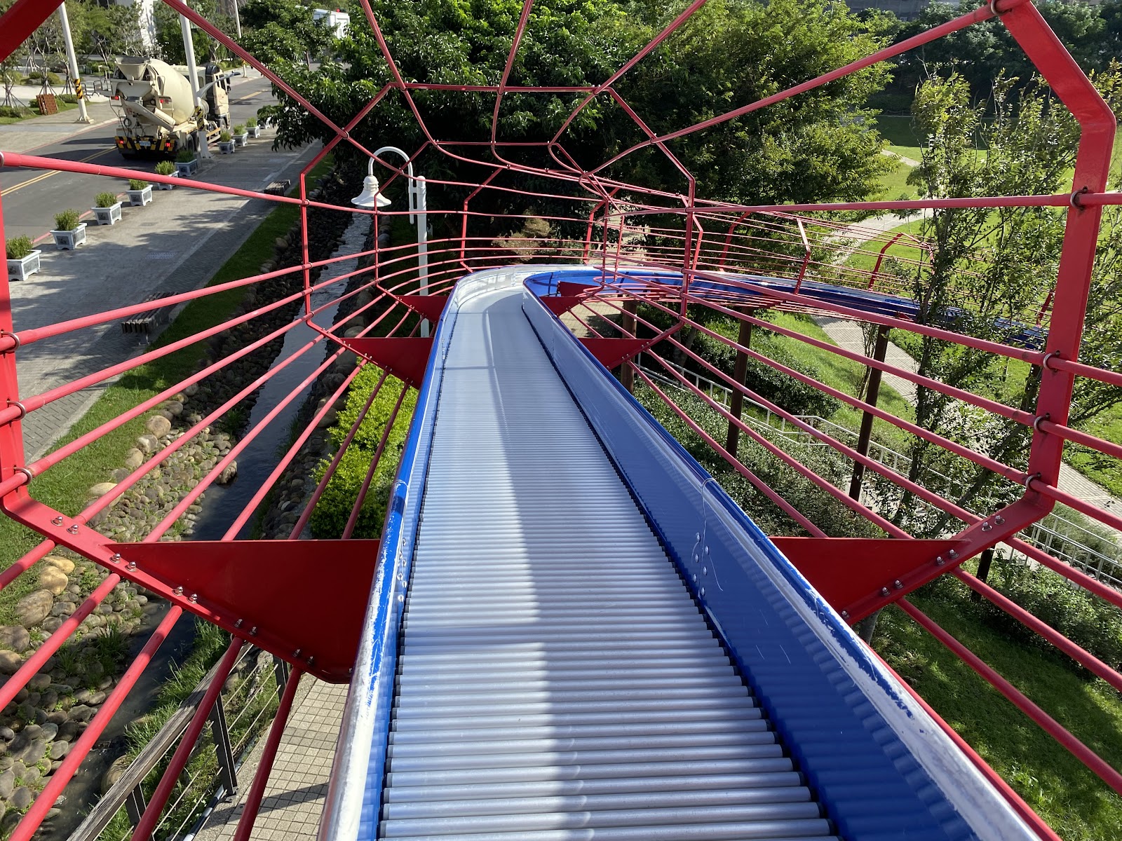 難得有機會到桃園,趕緊順路拜訪了之前一直想來,聽說有超長溜滑梯的風禾公園。實際來到遊樂區會發覺週邊還滿空曠的,遊樂設施沒有想像得多。超長溜滑梯當然是大家的焦點,而且大小朋友都能玩,即使沒有使用滑行板,直接滑行的速度還是比想像中要快,年紀大了有點膽小,中途忍不住還是試著用腳減速,但我看小孩溜都完全沒在怕的。來到此公園,溜一次體驗一下才不枉此行。
