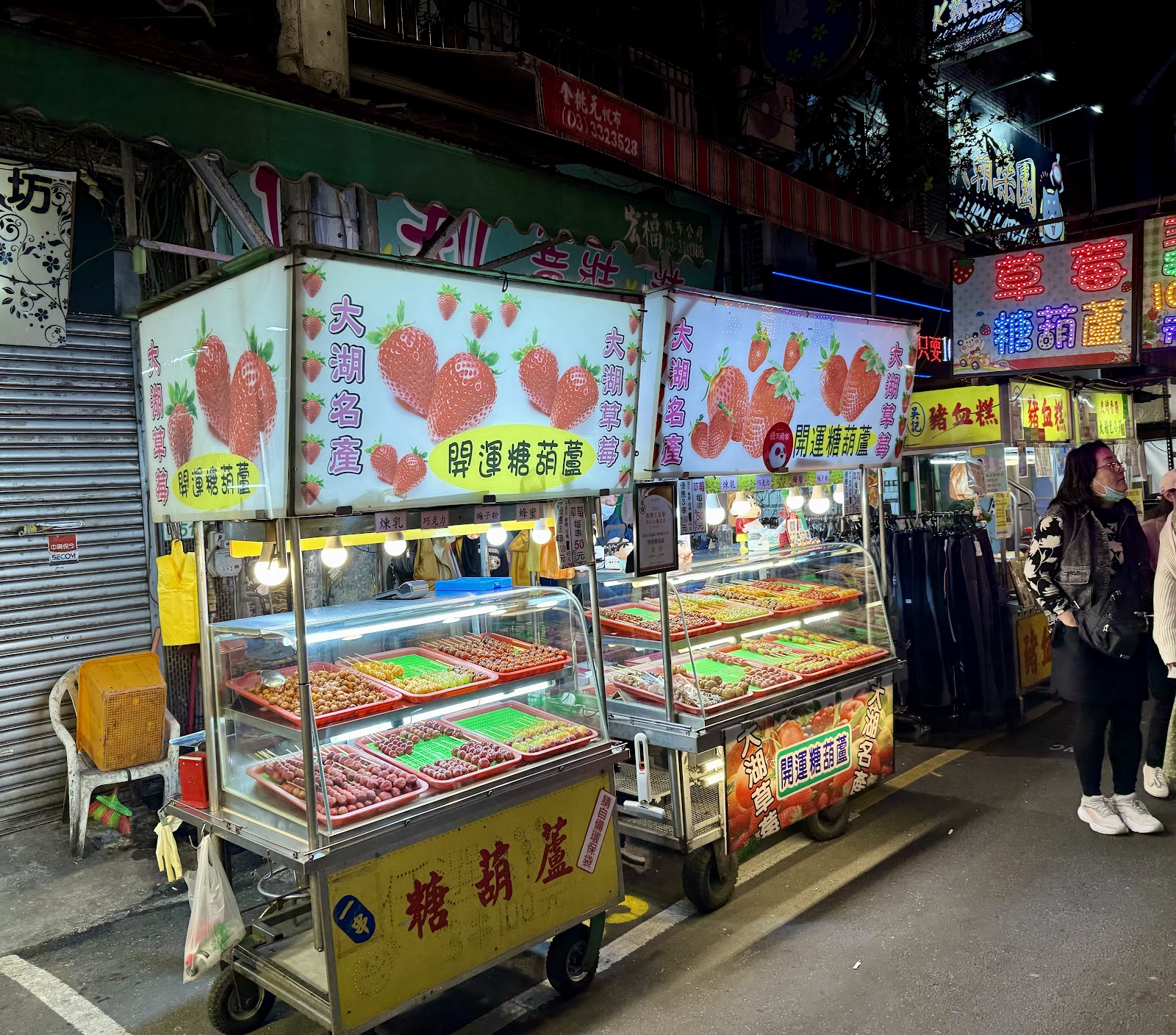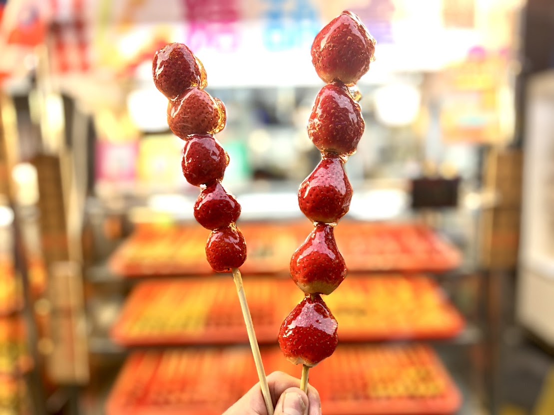 位於桃園觀光夜市裡面,這攤糖葫蘆老闆是親切的大男孩😁,除了常見的草莓🍓、小番茄🍅蜜餞串之外,也有柑橘🍊、葡萄🍇、鳥梨的喔!每串40元,可使用電子支付~攤位乾淨,糖葫蘆糖衣不會裹太厚,一下子就吃光啦🍬要指名購買「水果🥭糖葫蘆」這家才是最好吃的糖葫蘆唷😍😍😍