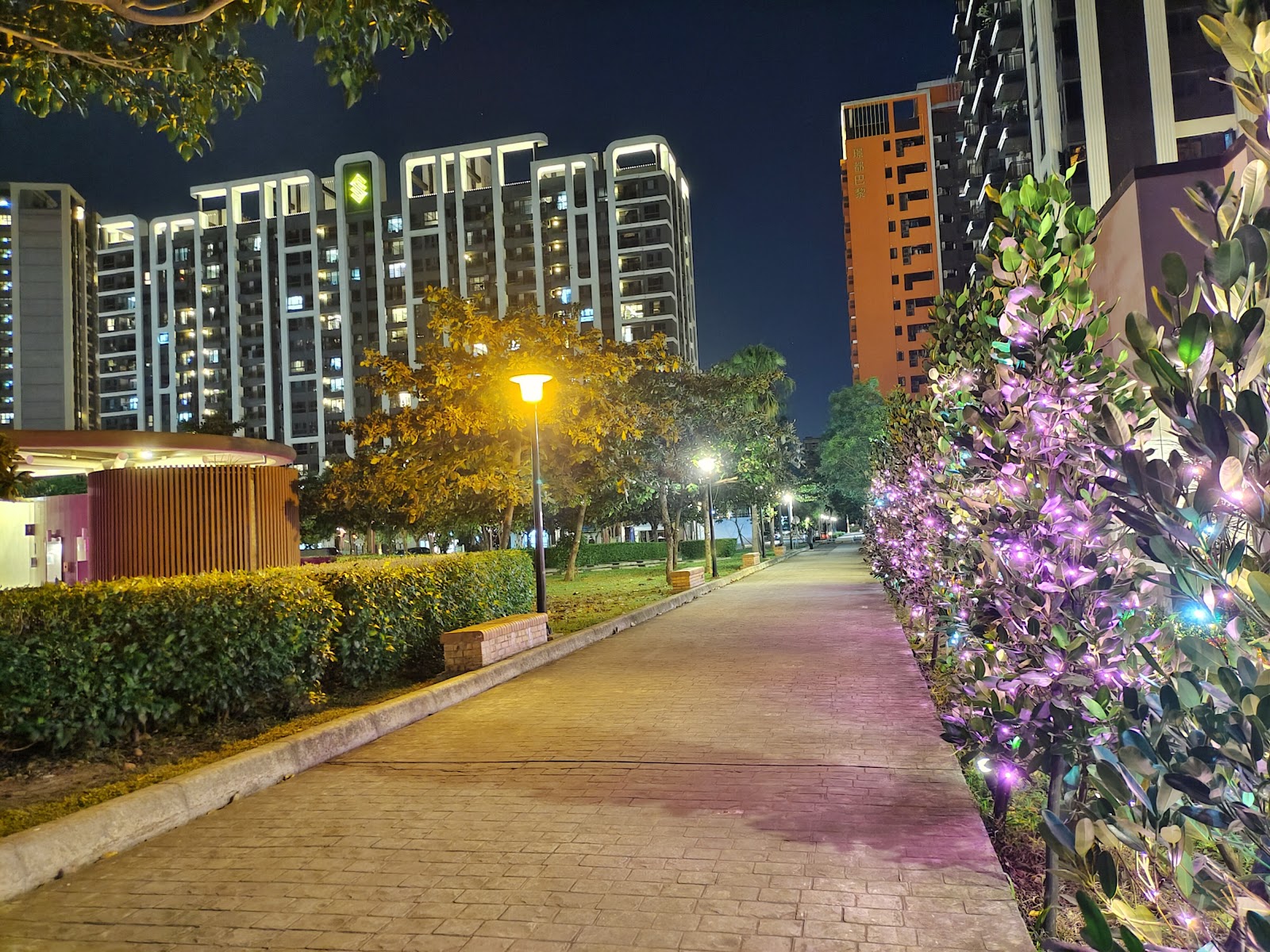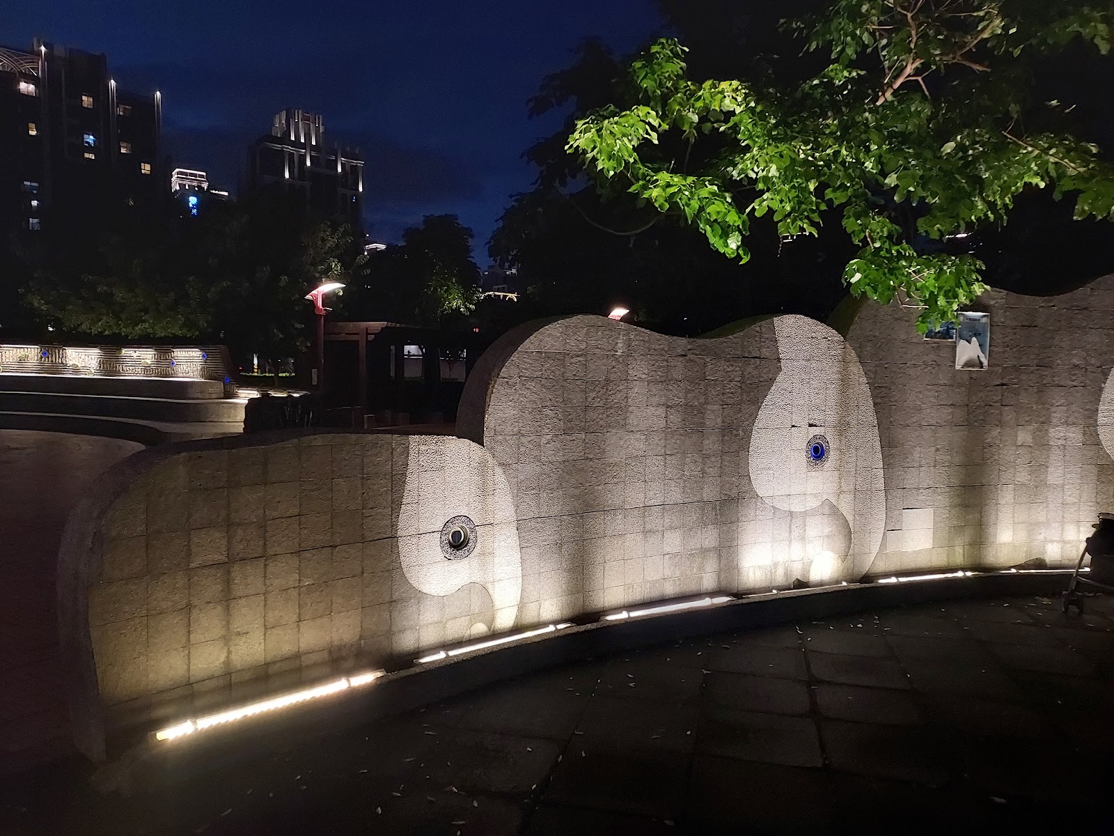 整體格局呈扇形,設有草皮廣場、林蔭步道與市民活動空間,環境寬敞且維護良好,白天與夜晚皆安全明亮。