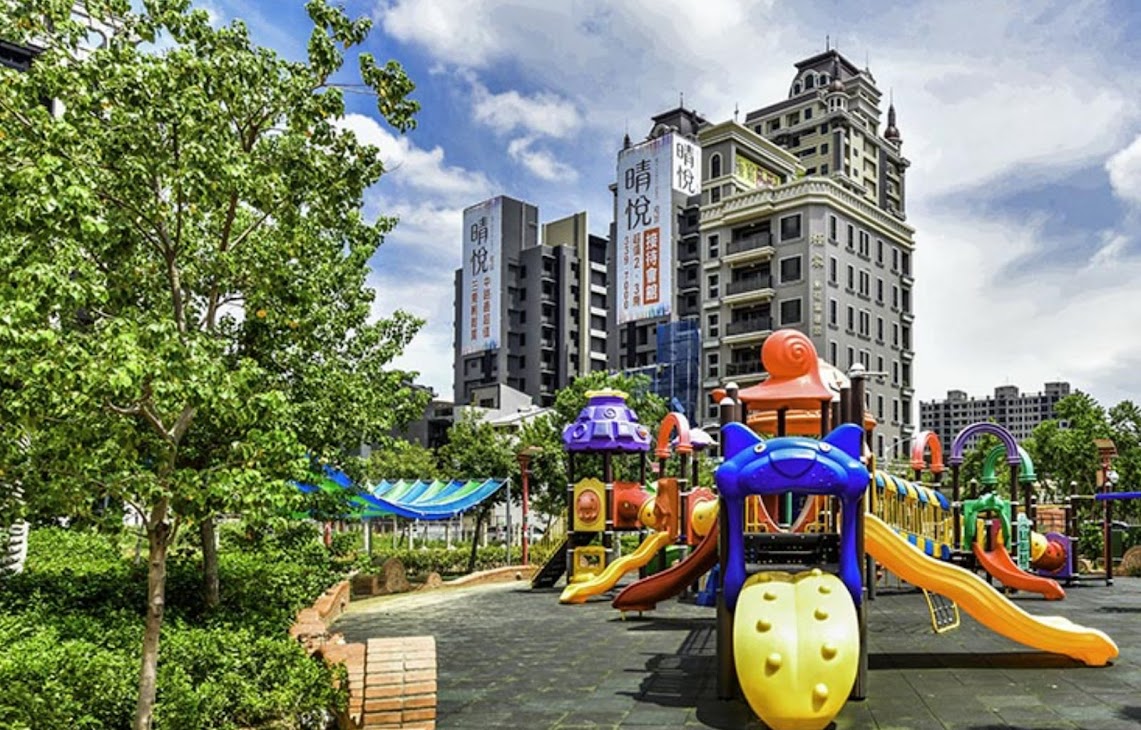 向陽公園是桃園中路重劃區內的特色綠地,融合自然地形與共融設計,成為親子休憩與社區活動的理想場域。