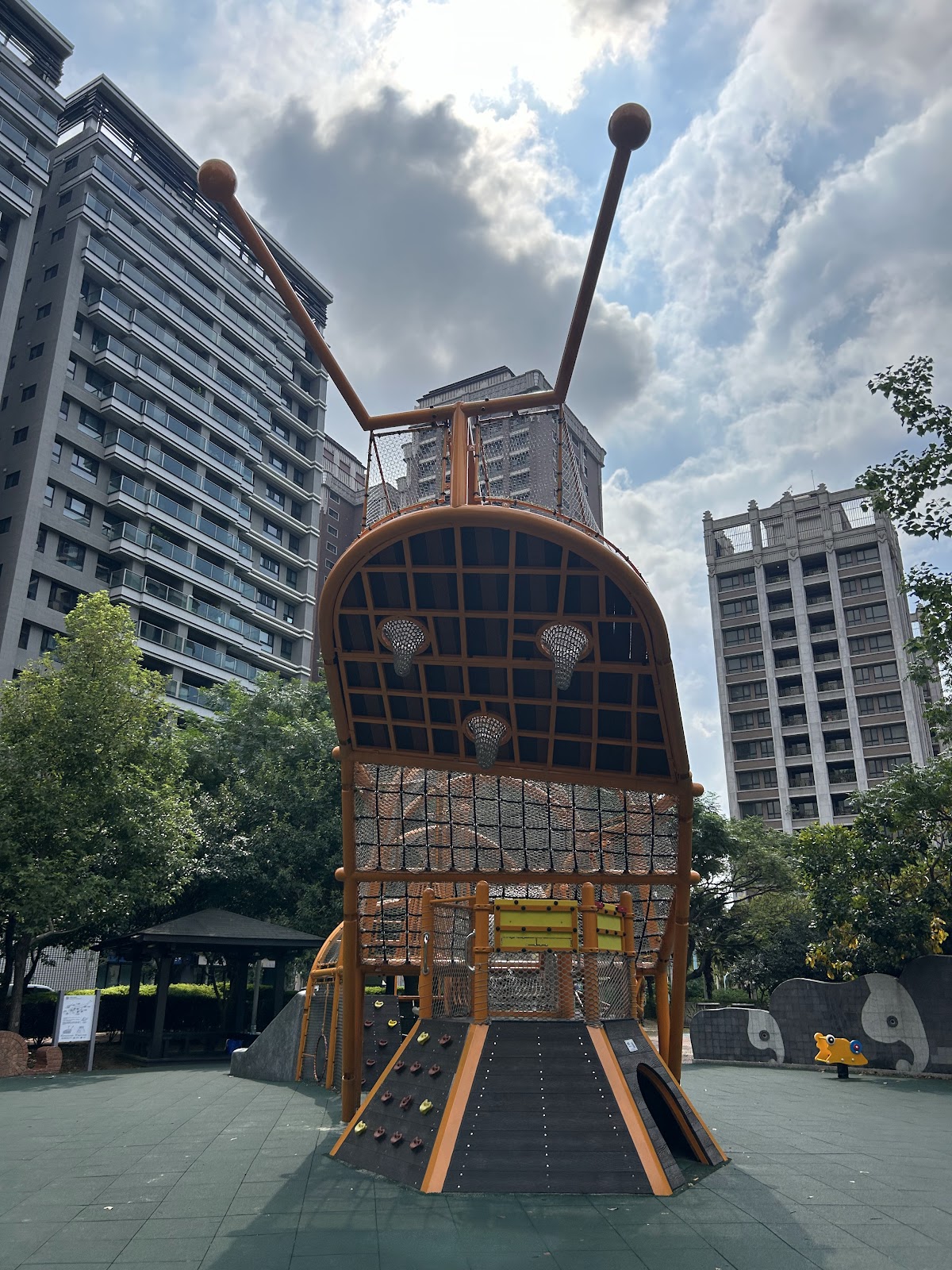 公園設施更新完成並且開放了,目前公園遊戲場主題應該是蝸牛或蛞蝓,有一個中等大小的磨石子溜滑梯,還有可以攀爬到約2層樓高的挑戰區。