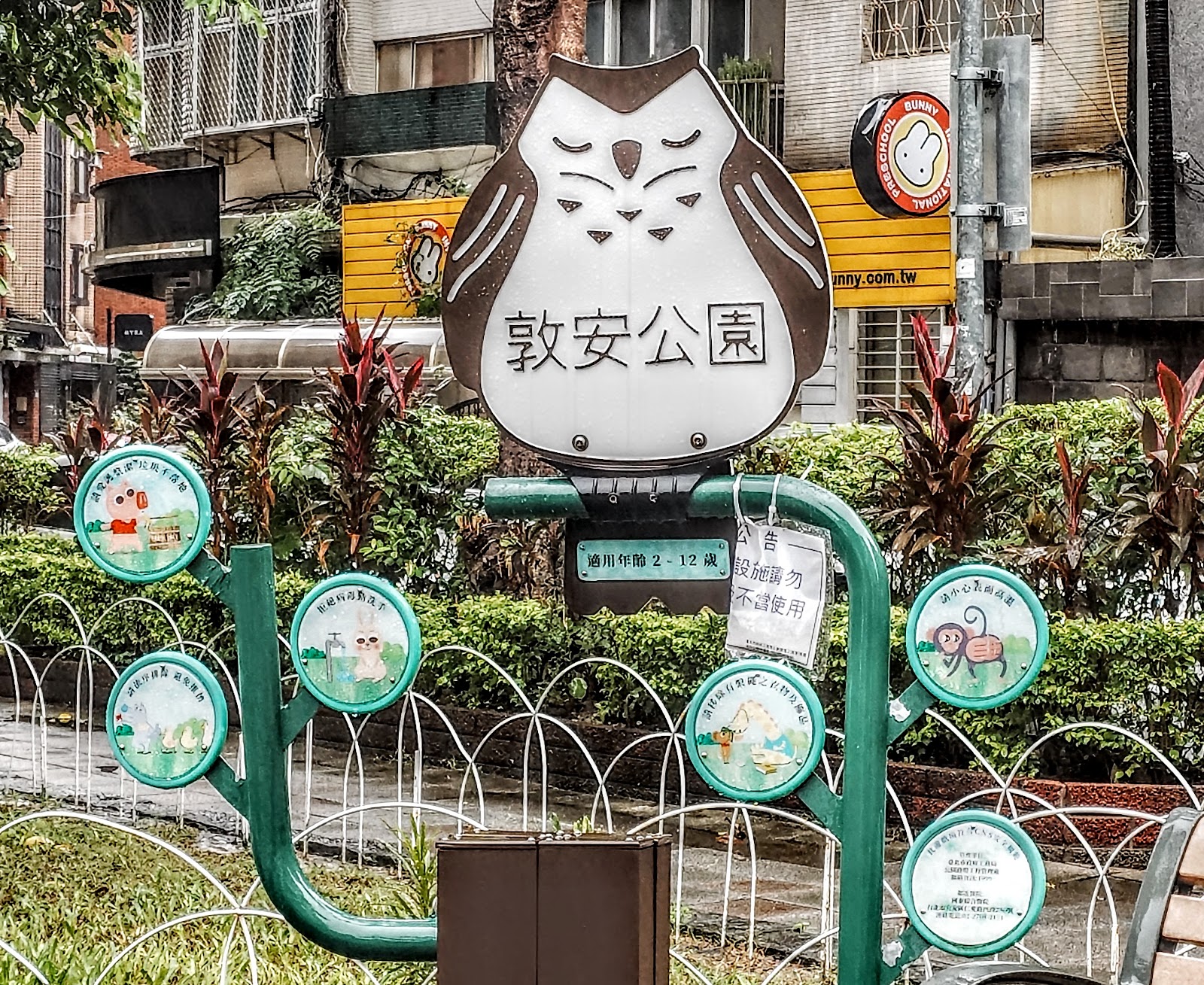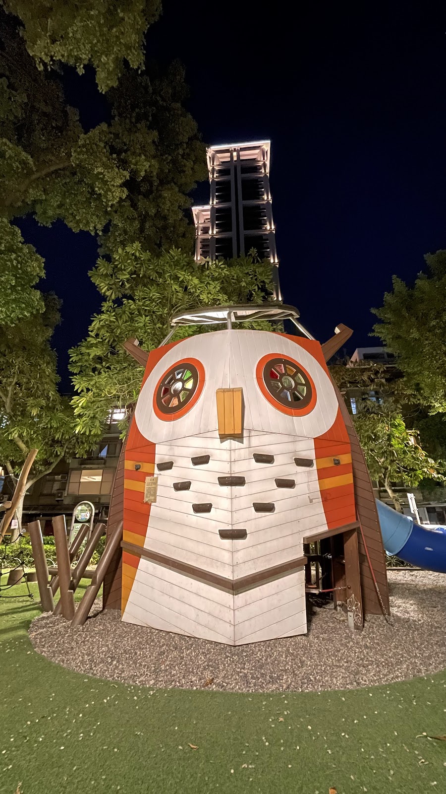 新整建好的社區公園,貓頭鷹造型的設施主體非常吸睛,據說是社區的家長參與討論下設計出來的產物。雖然公園不大,雖然貓頭鷹僅有兩層樓高,但是其中有相當多的設計巧思。