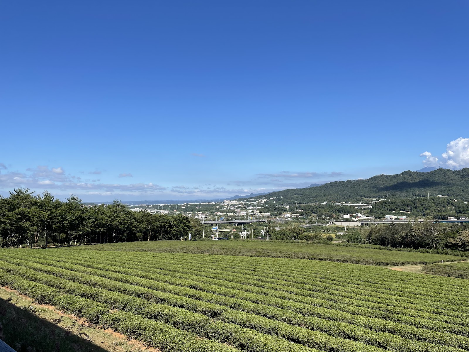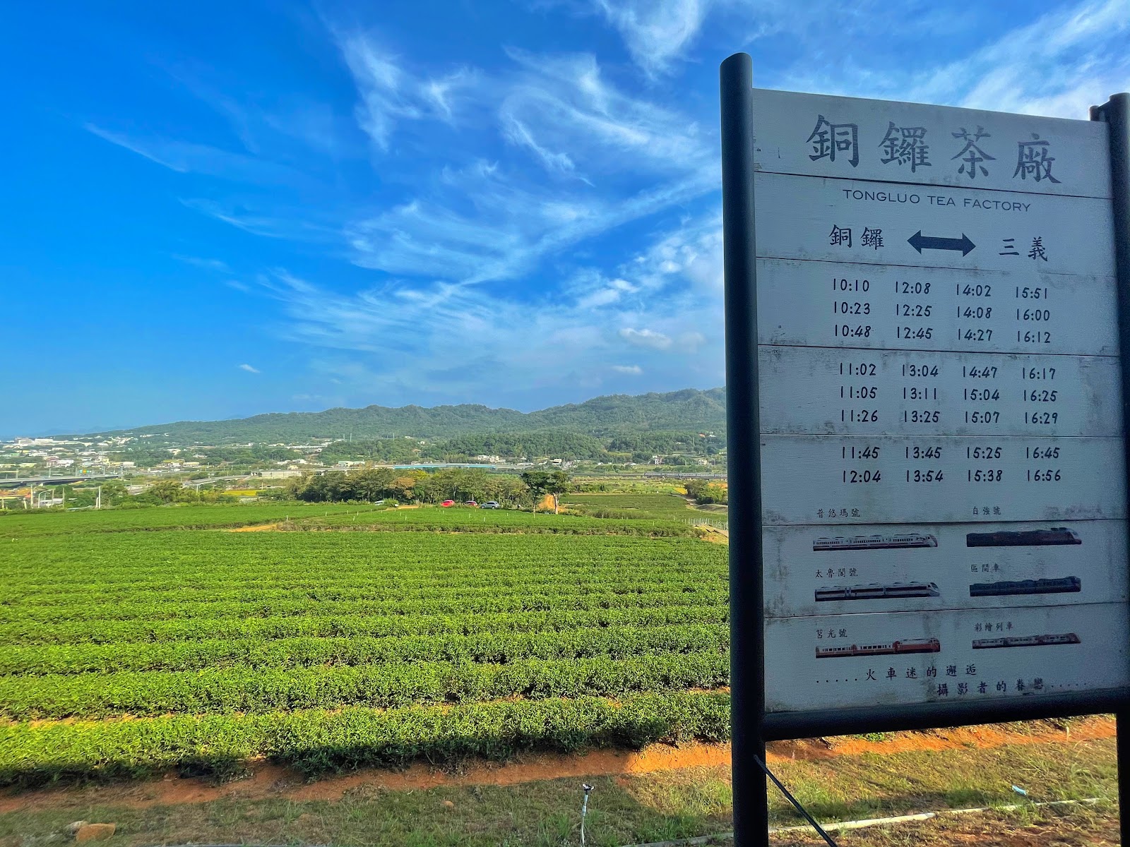 在茶園及茶場內可遠眺台鐵列車經過及關刀山美景