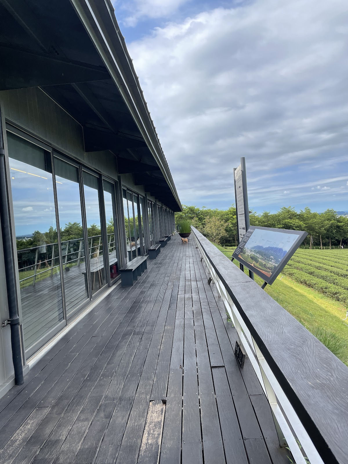 裡面介紹茶廠的配備少,沒什麼好參觀的,主要是在於景觀,視野不錯,可以近看茶樹園,遠看可以看到火車行駛,外面的火車時刻表不一定準,我準時去等待,多等了約15分鐘左右才看到火車行駛過去。