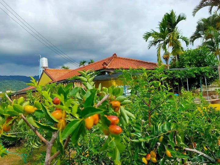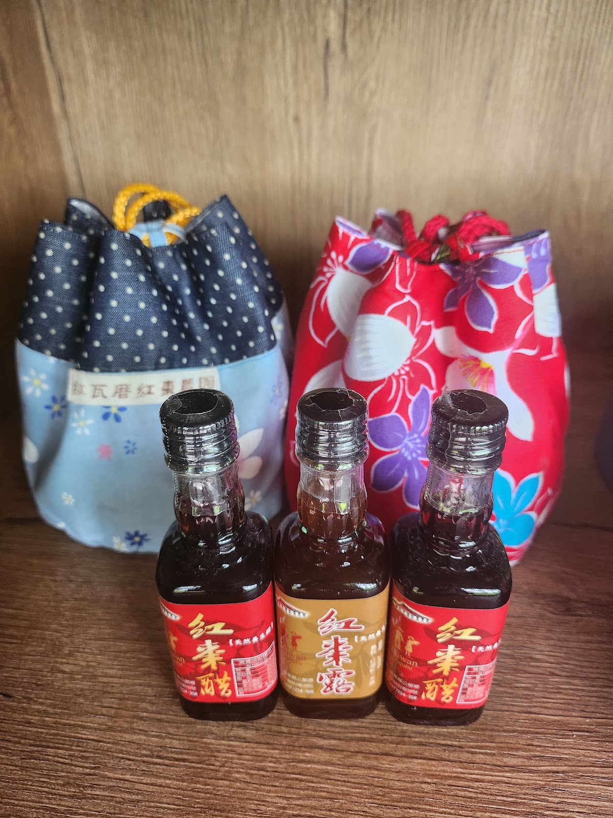 要北上前,在網路上看到地圖上標示紅瓦厝紅棗農園,因沒有預約,直奔前去,看到門是關著,有些失望,路旁有招牌顯示電話,女主人說熟客會沿著圍牆的小走道進入農園,她很親切和我介紹他們的種植用牛奶蔬果酵素液體肥,友善耕種! 今年(2024)在6月間就採收完了。不過沒有關係,雖然無法採果,卻藏有好料~ 哇! 冰冰品嚐起來....風味絕佳!下手買了一禮盒300ml /2入,純天然手工製作紅棗醋。