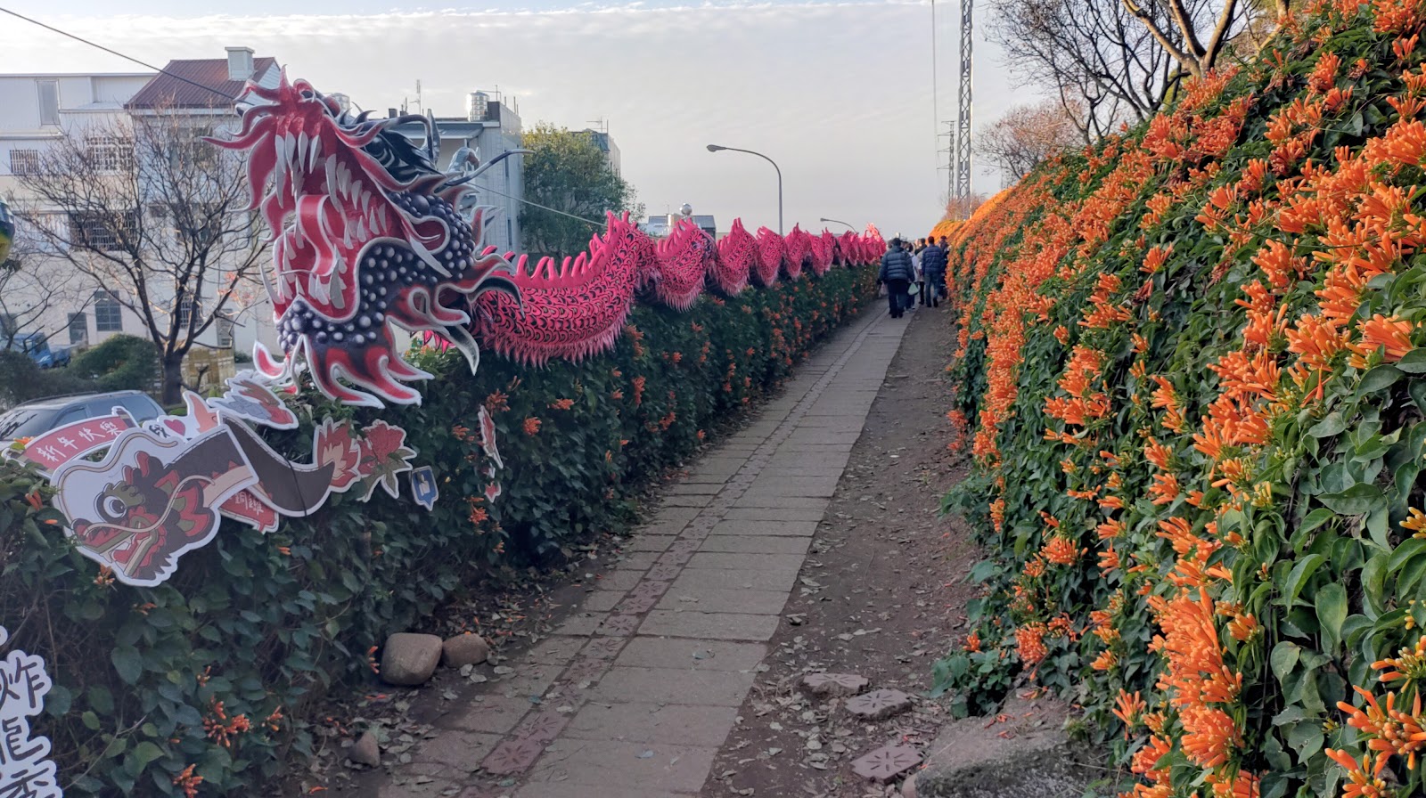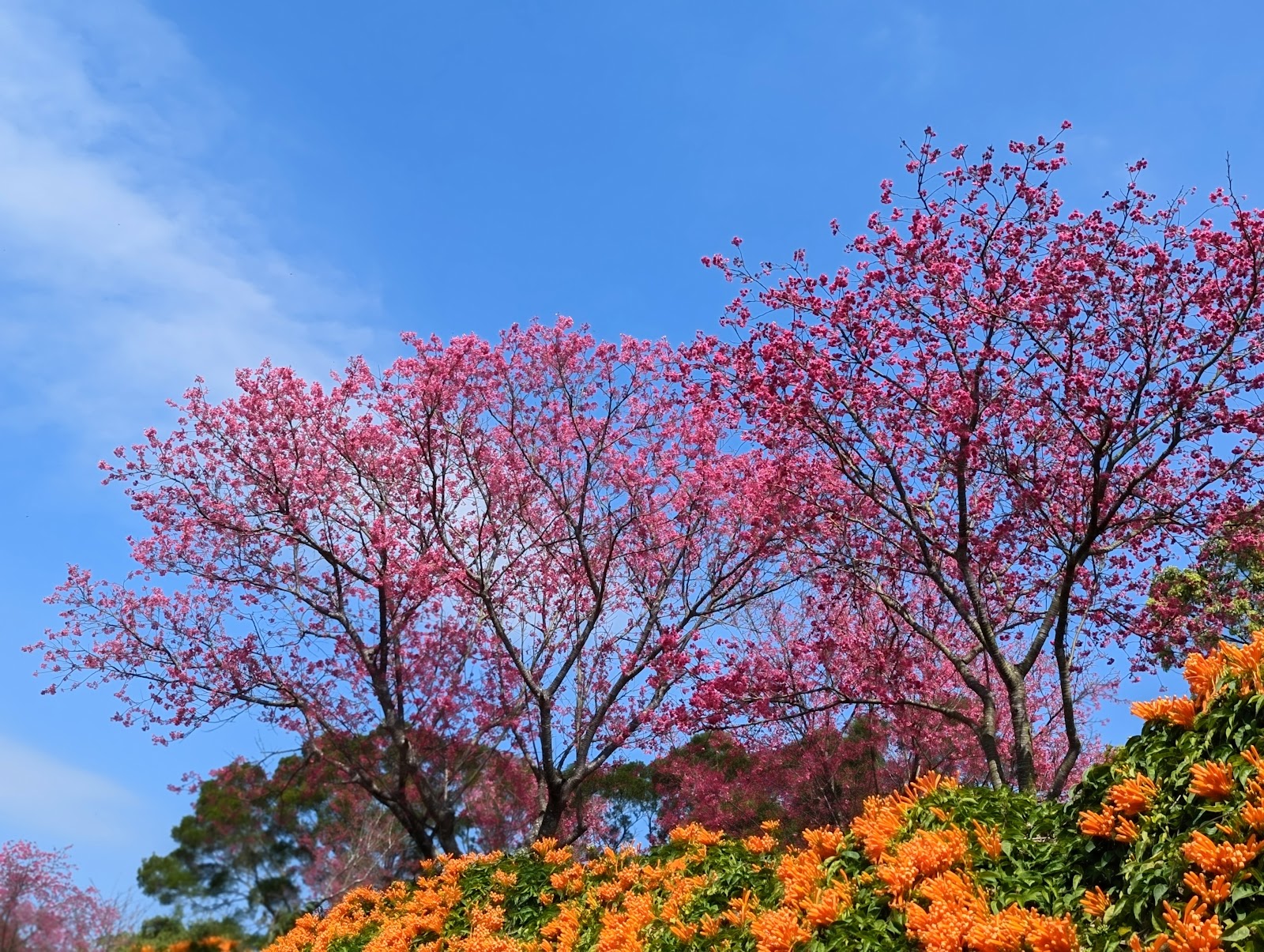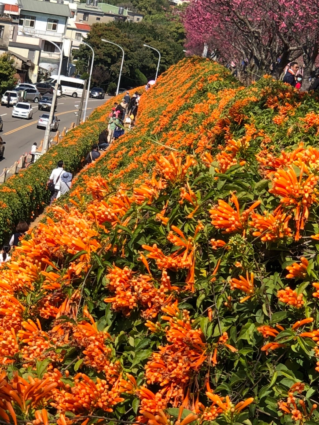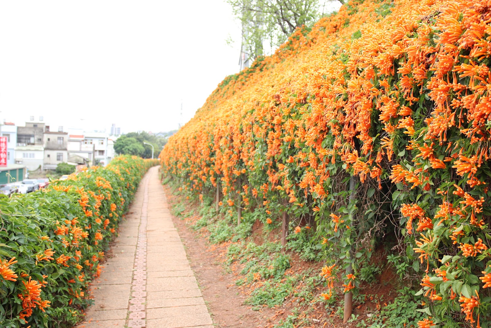增蓋了一座新的男女洗手間,位於路邊的炮仗花步道非常壯觀,一整片的炮仗花海點綴出美麗的橘紅色,沿著步道走到盡頭還有櫻花以及瞭望台。