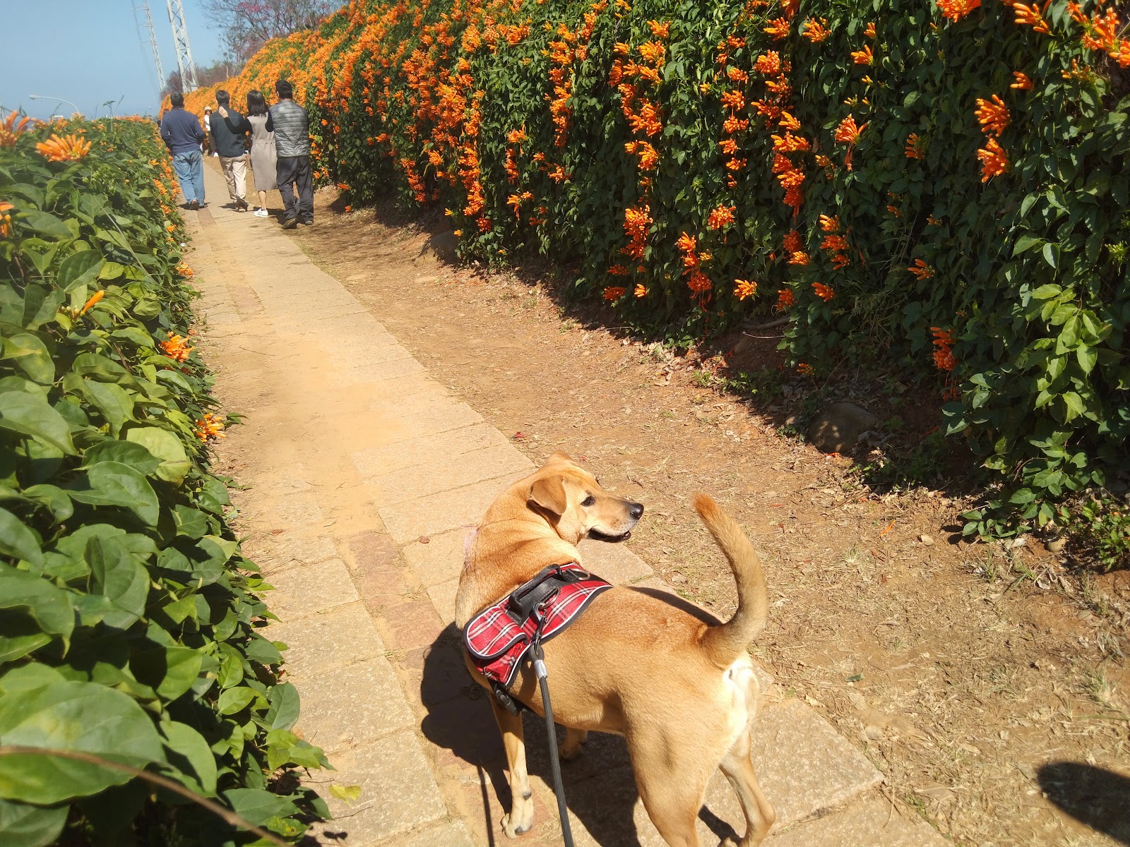 🔸漫步在花海,遇到一隻黑狗,默默跟隨在身後,最後還護送我們過馬路、駕車離開🥺💛