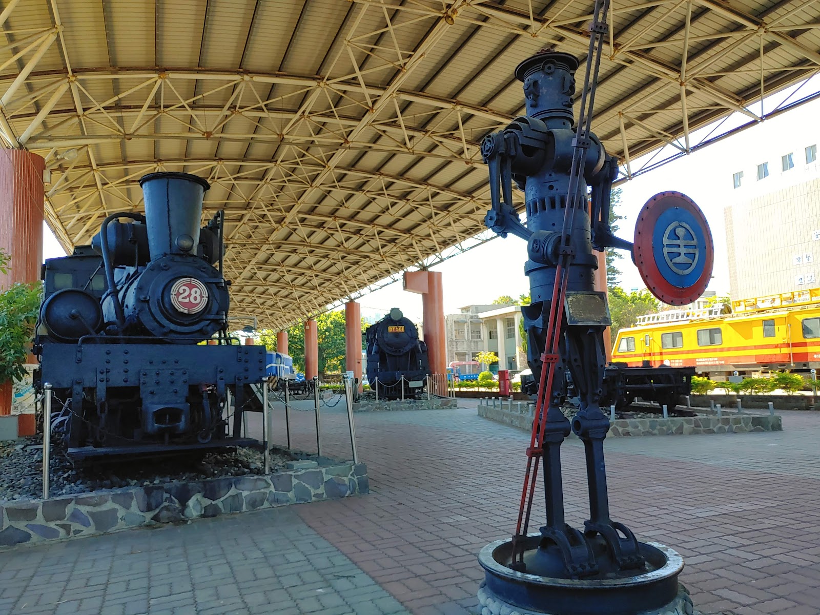 有多種古老車頭與車廂,還有鐵製機器人展出。