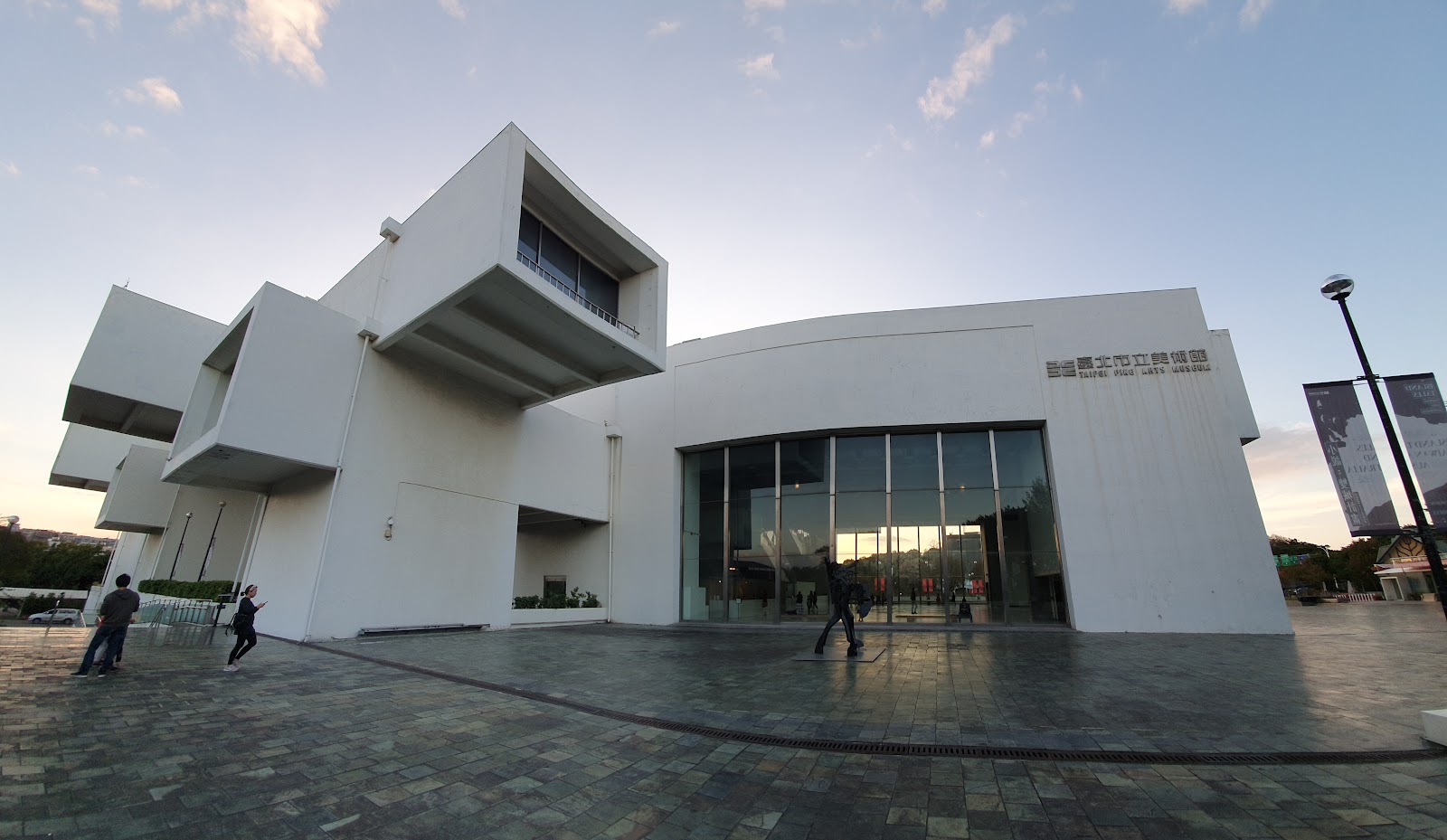 臺北市立美術館(TFAM)為台灣首座現當代公共美術館,由高而潘設計,於1983年啟用,整個建築由數個長方管狀結構組構形成如立體四合院的展埸,整個北美館不只充滿方形元素,還設計了玻璃外牆及中庭,再搭配大理石地板,光線色調非常特別。結合前衛建築設計、寬大乾淨的內部空間等特點,不只跳脫戒嚴時期制式的氛圍,就算在40年後的今天,依舊是很前衛的設計。票價相當親民($30內),在策展內容及敘事性完整之下顯得非常超值