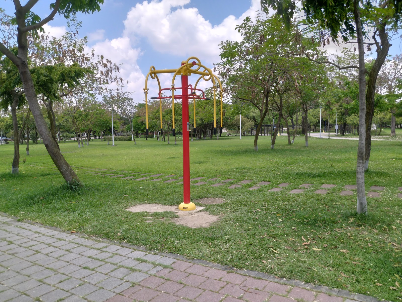 吃完晚餐來這裡走走,這個公園有三人扭腰器、雙人漫步器、單槓、雙人腹肌板、伸腰伸背器、三人上肢牽引器、寵物活動區、公廁。