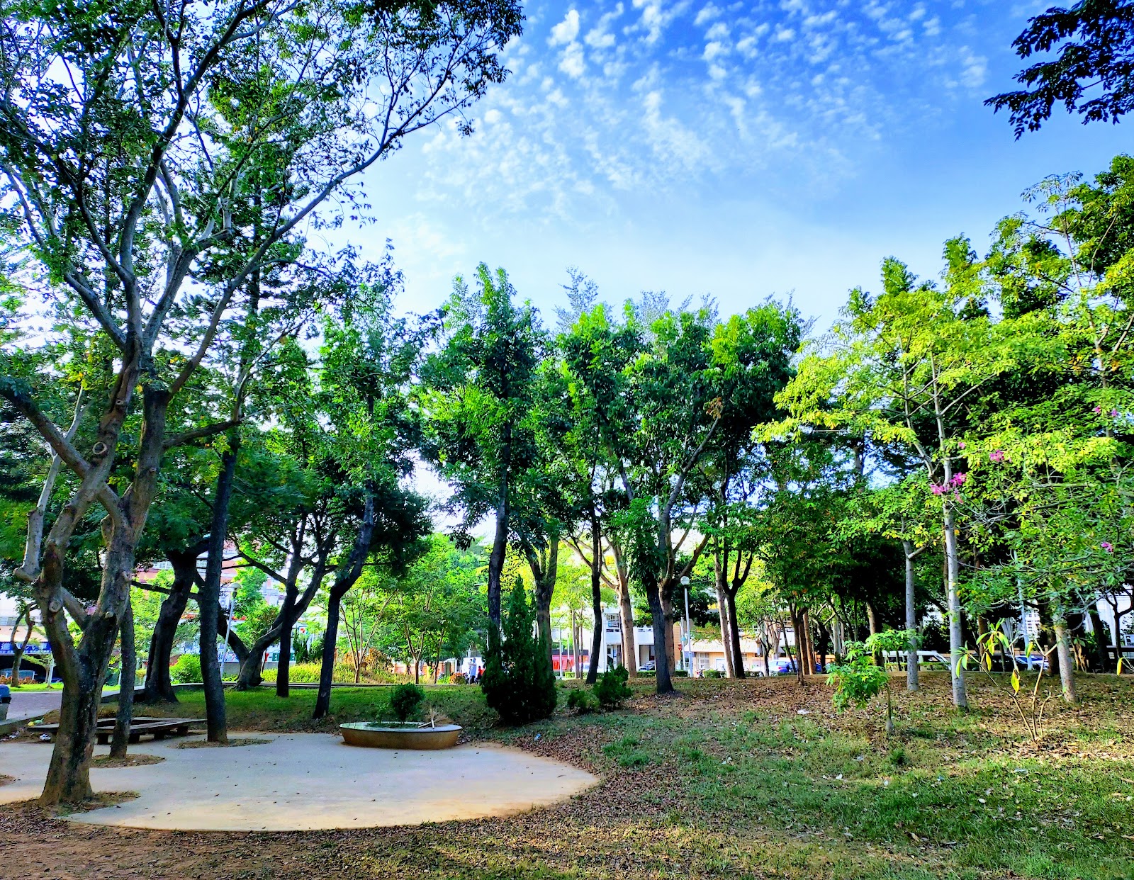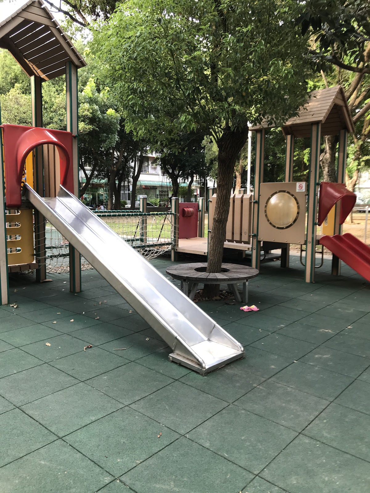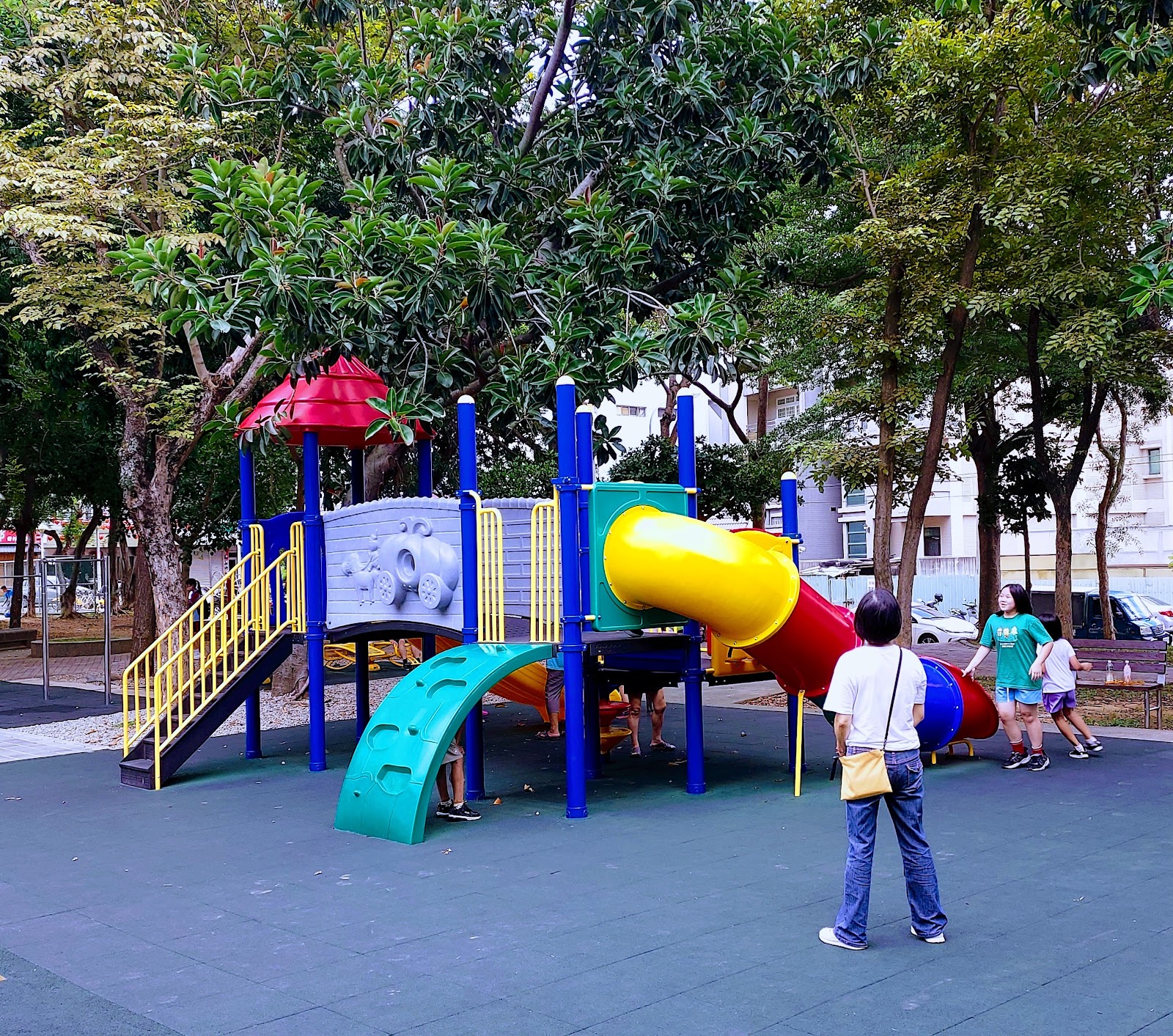 很涼、樹蔭多、也很通風,一個星期會到公園遛小孩4-5次,常常到處找不一樣的公園去玩,遊樂設施在社區公園算多的了!路邊停車也算蠻方便的,3分鐘內還有家樂福跟麥當勞👍