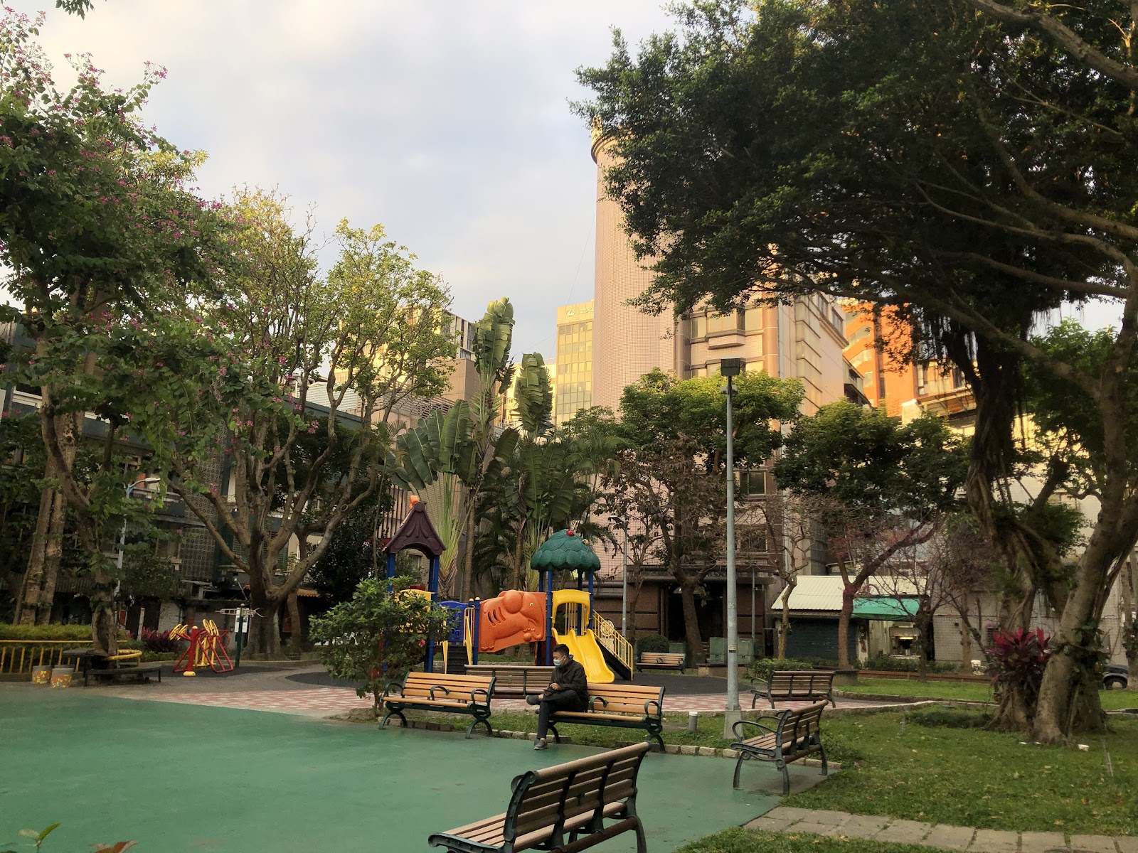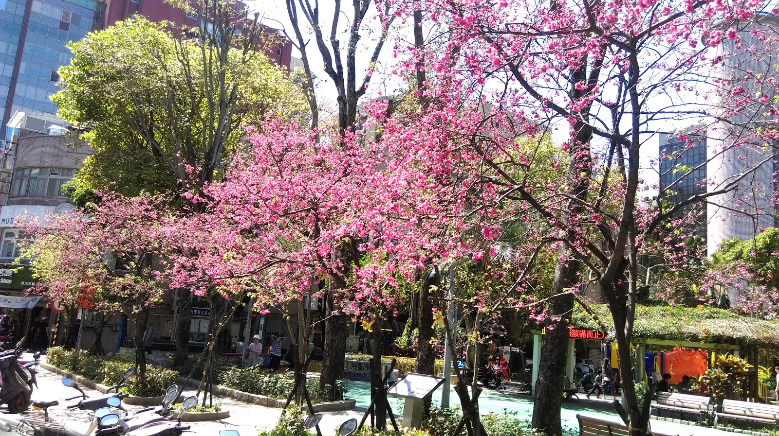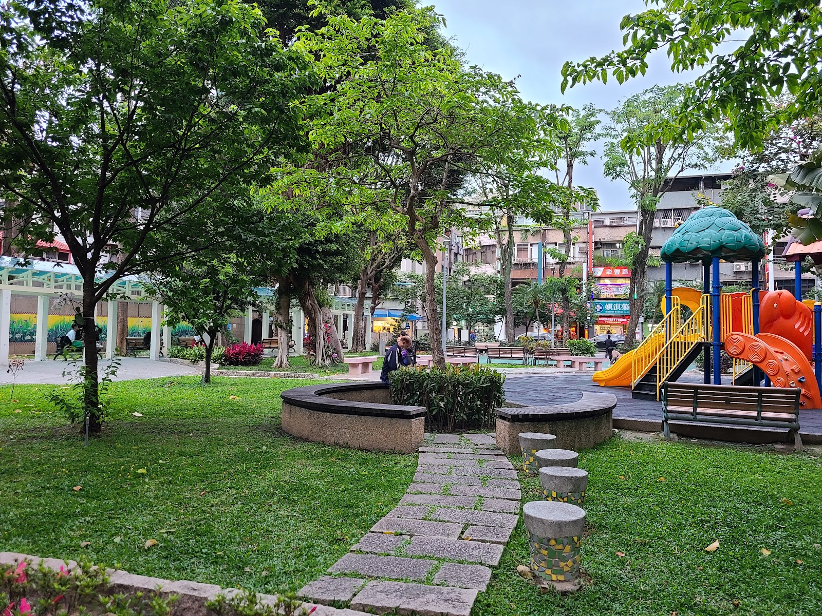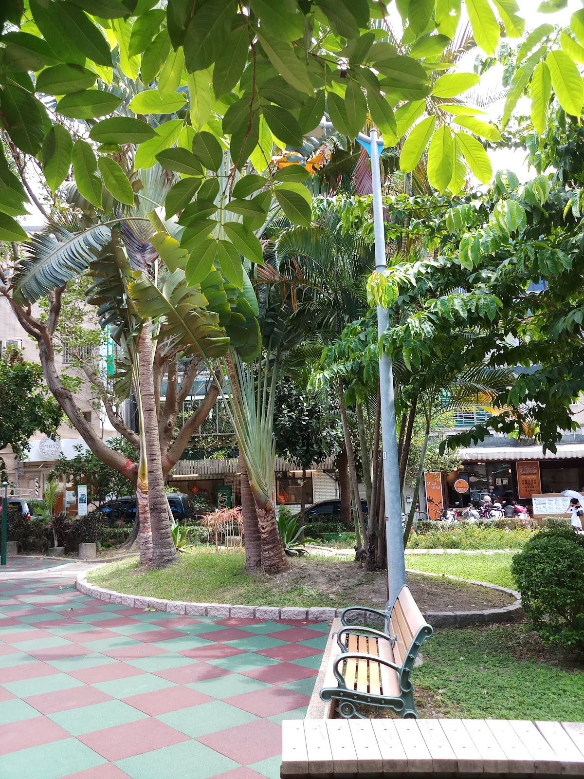 商業區裡的小公園,有花草綠蔭,適合短時間放空休息的地方。