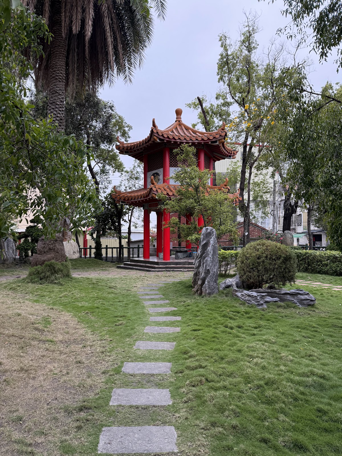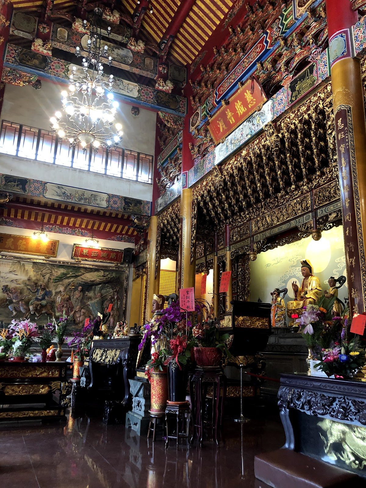 第一次看到寺廟裡面居然有鳥飛來飛去,一大奇觀,主神是觀世音菩薩。相傳當年有瘟疫發生,菩薩託夢讓人們去挖地面的黑米治病,每人只能挖3顆。現在廟裡面還有7顆黑米,就放在大殿的玻璃罩。很安祥寧靜的一間寺廟。每逢禮拜四廟旁邊還有夜市。廟旁邊跟對面的停車場免費停車。