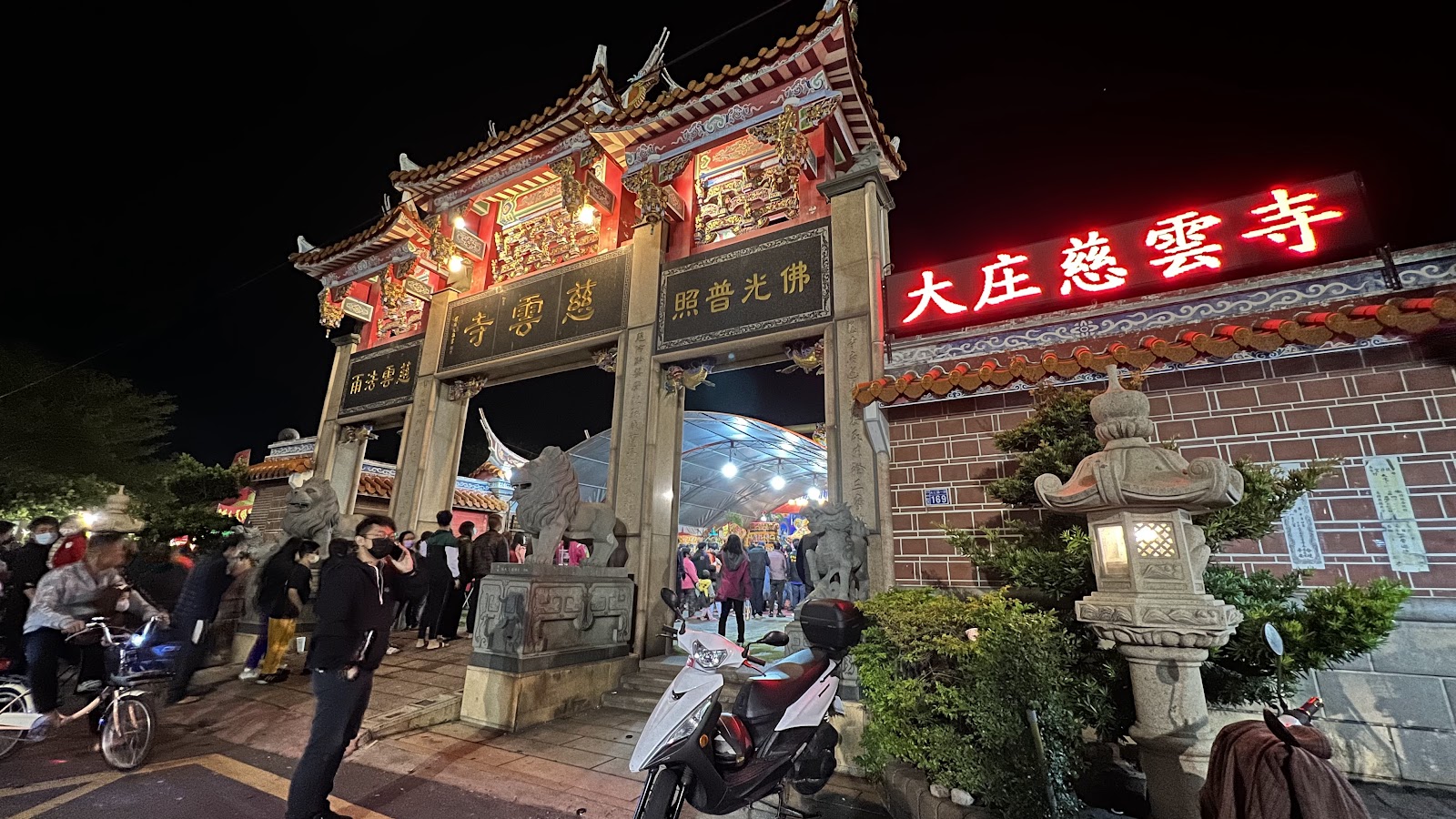 供奉主神為觀世音菩薩,寺廟整體莊嚴神聖,旁邊附有兩個停車場方便停車,週一跟四還有固定的夜市,據廟方說明,週四的比較大,整個停車場都是,週一比較屬於街道上的夜市,今年代表公司承辦中元普渡,從白天忙到夜晚覺得很有成就感也很有意義,有趣大村都朋友們可以去拜拜祈求平安