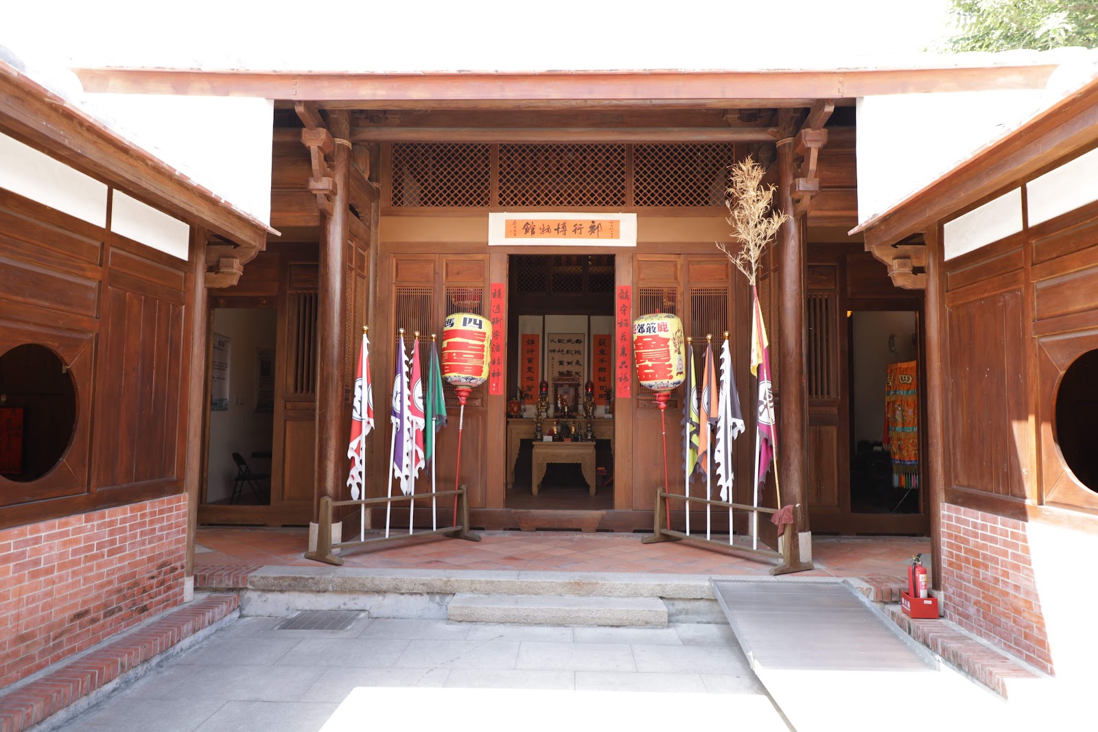 首進立面以洋樓圓柱與拱窗展現異國風情,中庭水道映照紅磚瓦影;後進則承襲閩南傳統格局,書畫名家鄭鴻卿、郭啟燕於廳堂施彩,文氣盎然。