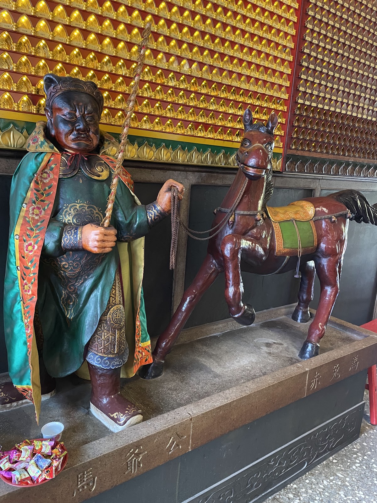 主要祭祀關聖帝君的廟宇,裏頭還有赤兔馬,這邊的護身符都是用印的,一張紙,這樣是比較環保嗎?