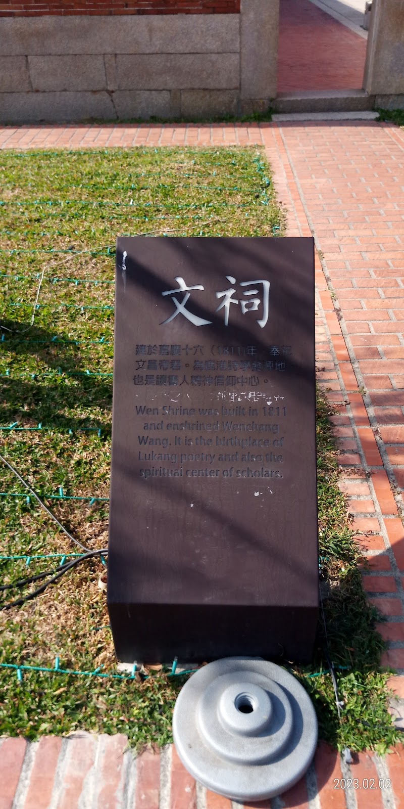 首頁 中台灣 彰化縣景點推薦 文祠 文祠 看更多照片 共10張 景點位置 附近住宿 週邊活動 週邊景點 評價 景點位置 地址:彰化縣街尾里青雲路2號 電話:04-777-2148 附近住宿 華倫汽車旅館 昇財麗禧酒店 華倫汽車旅館 昇財麗禧酒店 華倫汽車旅館 更多彰化縣住宿推薦 週邊活動 2024彰化景點|最新偽日本行程 日式禪風咖啡廳沒有預約吃不到! 詳細介紹 【彰化】南歐風格庭院在「花卉之鄉」 逛花園喝下午茶好愜意 詳細介紹 彰化美食|彰化肉圓吃哪家?必吃的彰化美食,竟還有銅板價的排骨飯! 詳細介紹 週邊景點 福興穀倉展覽館 評價: 人數:69人 甕牆 評價: 人數:168人 鹿港車埕玉渠宮田都元帥 評價: 人數:201人 鹿港三山國王廟 評價: 人數:77人 君子巷 評價: 人數:72人 更多彰化縣景點推薦 評價 4.6 Ivy Liu 5/5 2022/12/20 來文祠方知鹿港人文繪萃及文風發展低蘊 熊國榮 5/5 2022/03/06 主祠文昌帝君和孔子的禮拜場所。建於清朝,現列為保蹟保存。 陳炎能 4/5 2020/10/03 鹿港文武廟相當特殊,為三合一式的傳統文教祭祀空間,以文祠居中、文開書院居左、武廟居右等三個體組成的一大建築群,集廟、祠、書院建築於一處,一字橫排,文武併肩,可謂全臺罕見的奇特組合。 走進文武廟的紅磚步道,一旁是高矗入天的椰子樹,與一字排開的廟宇組成美麗好拍的攝影畫面。 文祠建於西元1806年,為二進一院的建築,正殿供奉文昌帝君,龕前左右側陪祀文武金甲神君。古代科舉分文、武兩科,文武金甲神代表恭賀允文允武的「加冠進爵」權力象徵。 兩壁有許多鹿港近代書法名家如歐陽錦華(西元1924-2012年)等人的作品,除了書法外,隨處可見木雕彩繪。文祠前方有一座水池,稱為泮池。昔日古人應試及第,循古禮於泮池邊摘取芹葉,插於帽緣。 陳裕文zw 5/5 2018/12/02 鹿港鎮 的奉祀 文昌帝君的廟宇.也是鹿港鎮上好停車休息的地方.中午時間用餐人士也喜歡來散散步. Yi Lin Tsai 5/5 2018/05/27 對於想求取功名,或考場順利的莘莘學子,求ㄧ支文昌筆回去結緣,據說蠻靈驗的。 Tai Ren Huang 4/5 2017/09/12 學生可以來求一枝文昌筆回去供奉喔! 資料來源由Google提供