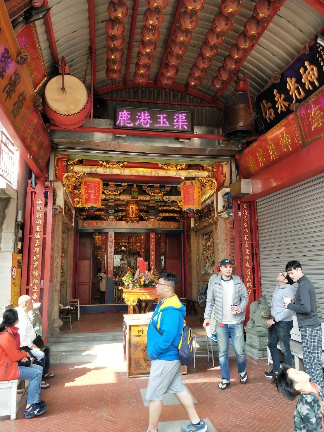 乾隆年間隨著移民至此,後來建廟,劇團來鹿港表演必來這裡參拜。在路邊轉角處,廟的裝置明亮色,望之如夢似幻。