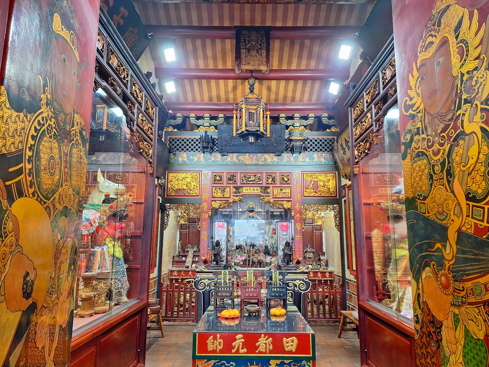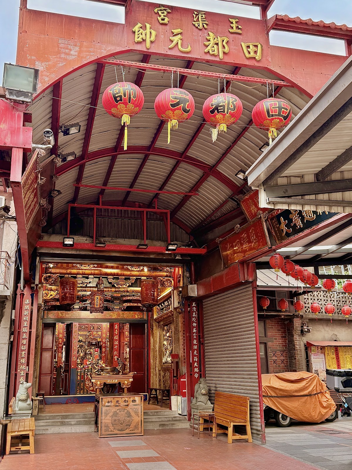 它是大有里的田都元帥廟,主神被視為戲曲神與兒童守護神,門口左右不是獅子,是雞與狗,因為牠們是田都元帥的隨從。他是唐玄宗時期的樂師,後來封神的神奇故事,祂姓雷,不姓田,充滿傳奇色彩!