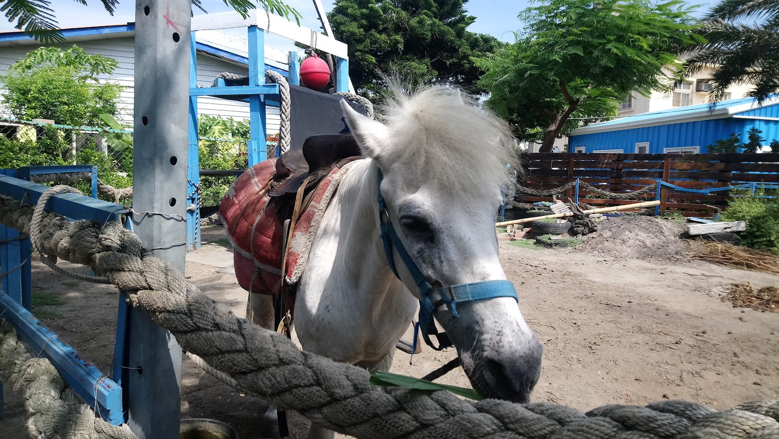 有如小小的農場,有鳥、兔、雞、鴨、羊、馬…,以大人50 小孩30的門票,換取一把通用草。也可以額外花100元繞小小園區兩圈體驗騎小馬。