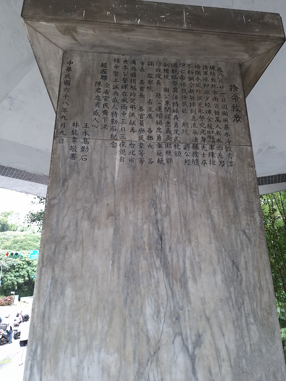比較特別的是還記載有1979年陳金龍少校殉職事蹟,這是教善坊全區最後一筆資料,此外碑身尚有許多空位,可能是打算記錄未來一些好人好事事蹟所預留的空位,可惜,時空就停留在陳少校捨命救眾故事中,再也沒有更新過。