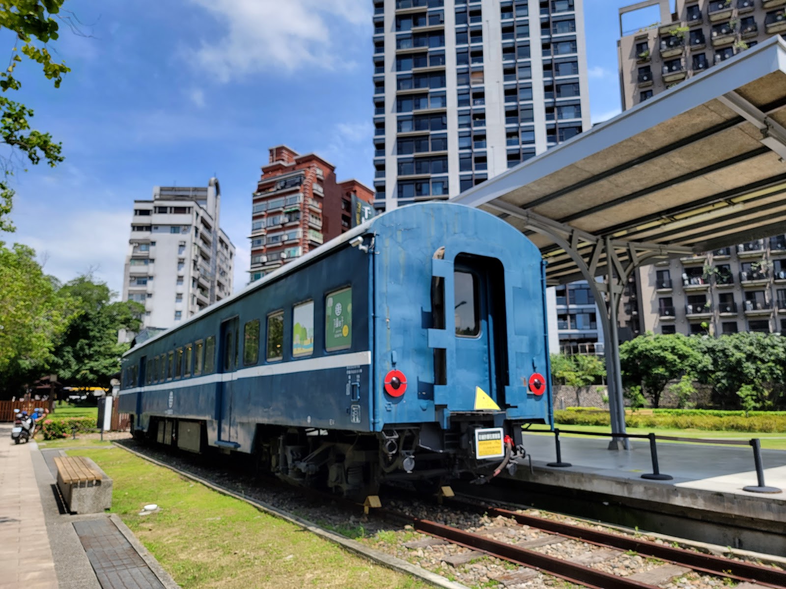 戶外區有舊台鐵藍皮列車展示。