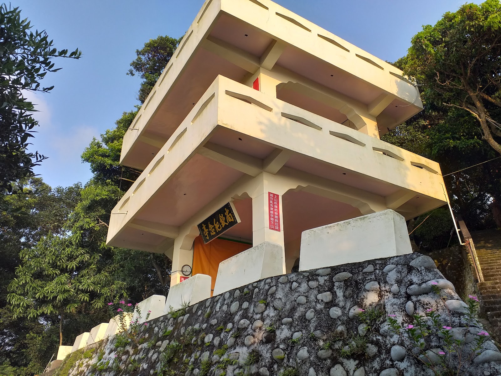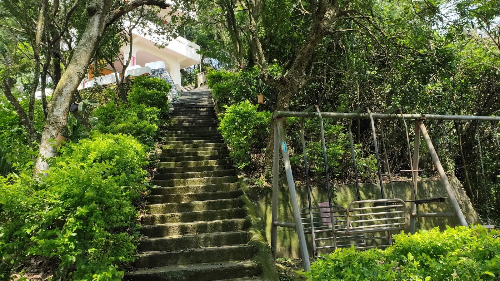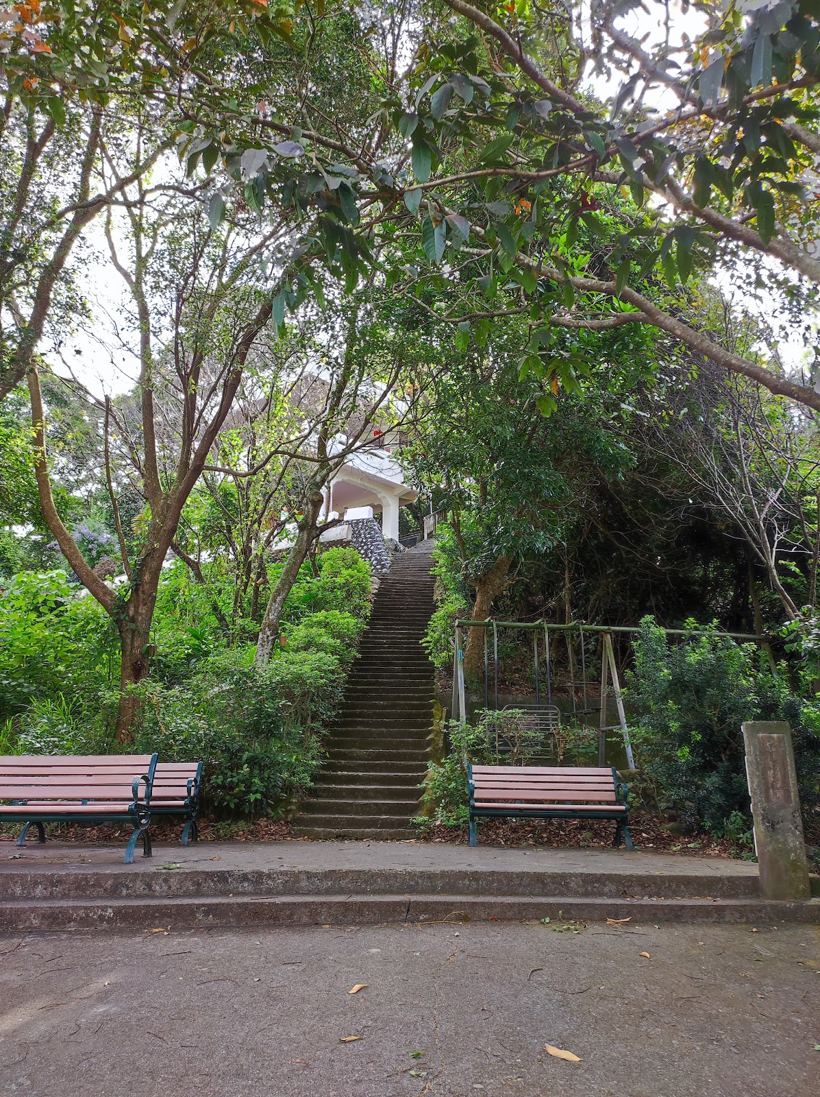 由三百崁很陡的階梯往上爬升至稜線就是水泥鋪設的森林果園步道,整條路上兩邊接種植龍眼等果樹,中途還有店家.涼亭,及荒廢的小型遊樂場所,尚欽紀念亭...全程約2公里,緩升的水泥步道,到此運動練練腳力,沒什麼特色,風景也不是很漂亮😄