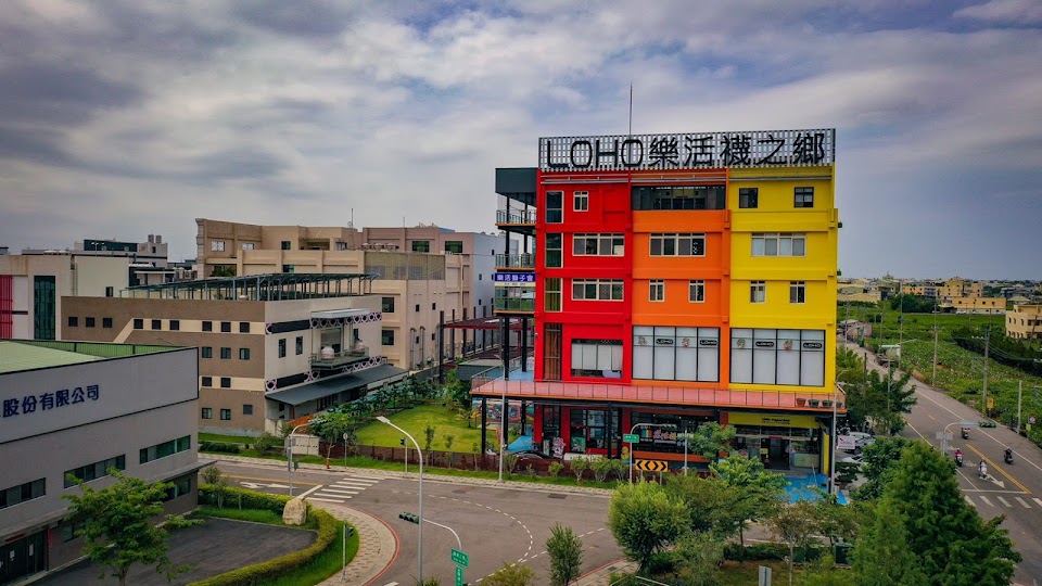 LOHO樂活襪之鄉企業有限公司擁有50年以上OEM、ODM代工織襪經驗,創立至今秉持著優質、自然、健康的經營理念。樂活襪之鄉入口意象採用整棟彩色義式建築