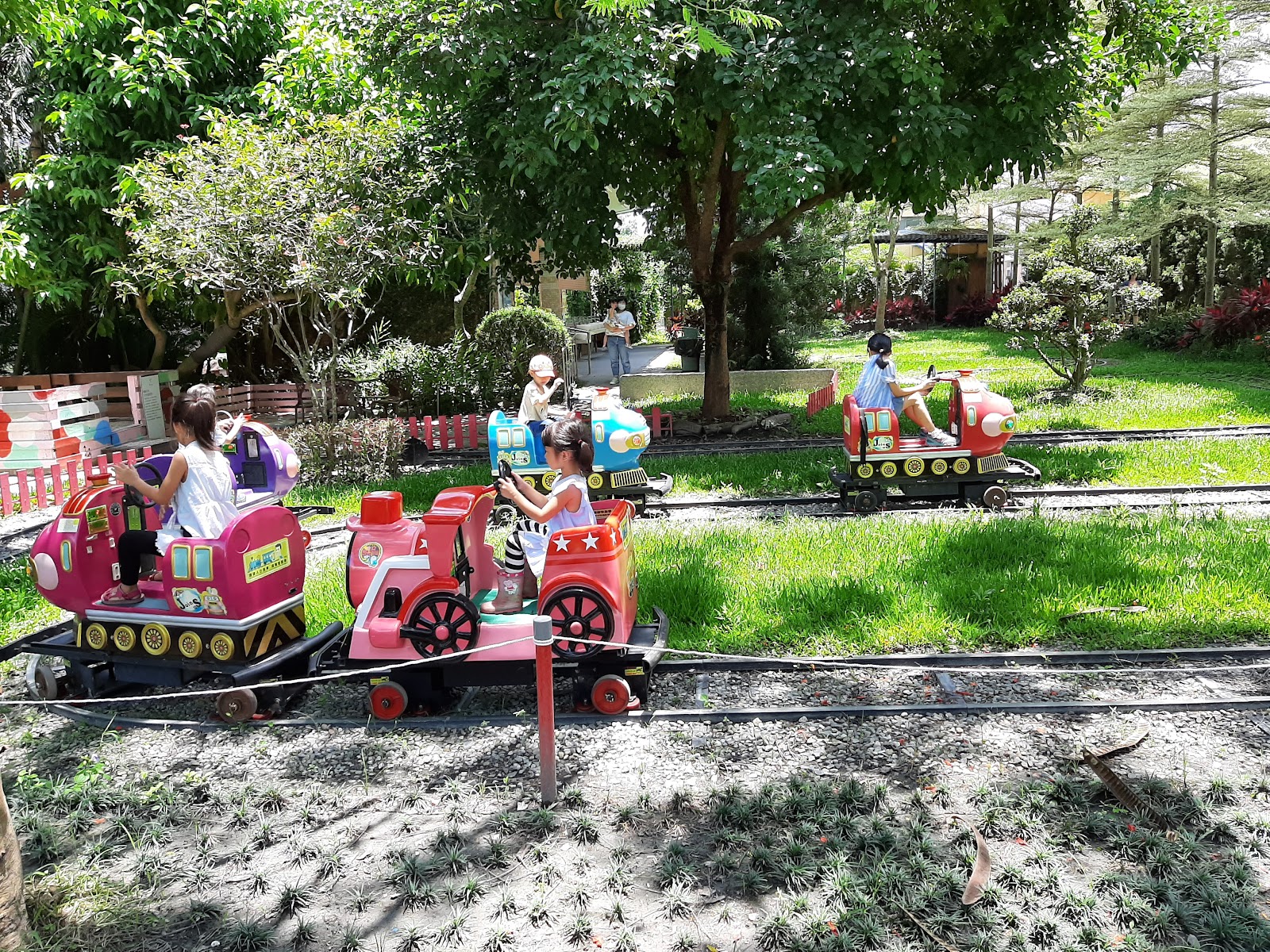 門票可折抵餐點還行,招牌菇菇火鍋養生好吃份量夠。園區內的小火車 30 元一趟,大草原跑跑可以消耗一些時間與體力,是個還不錯的地方。