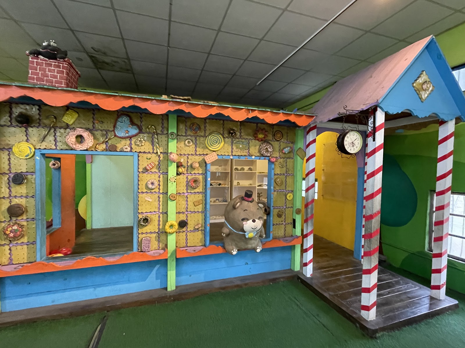 2.溜滑梯 裡面有兩種溜滑梯 但我覺得適合兩歲以內的小孩 它跟黏土區是分開的 需要去另外一個空間 裡面也有一台投幣式按摩椅 讓大人可以邊顧小朋友邊按摩