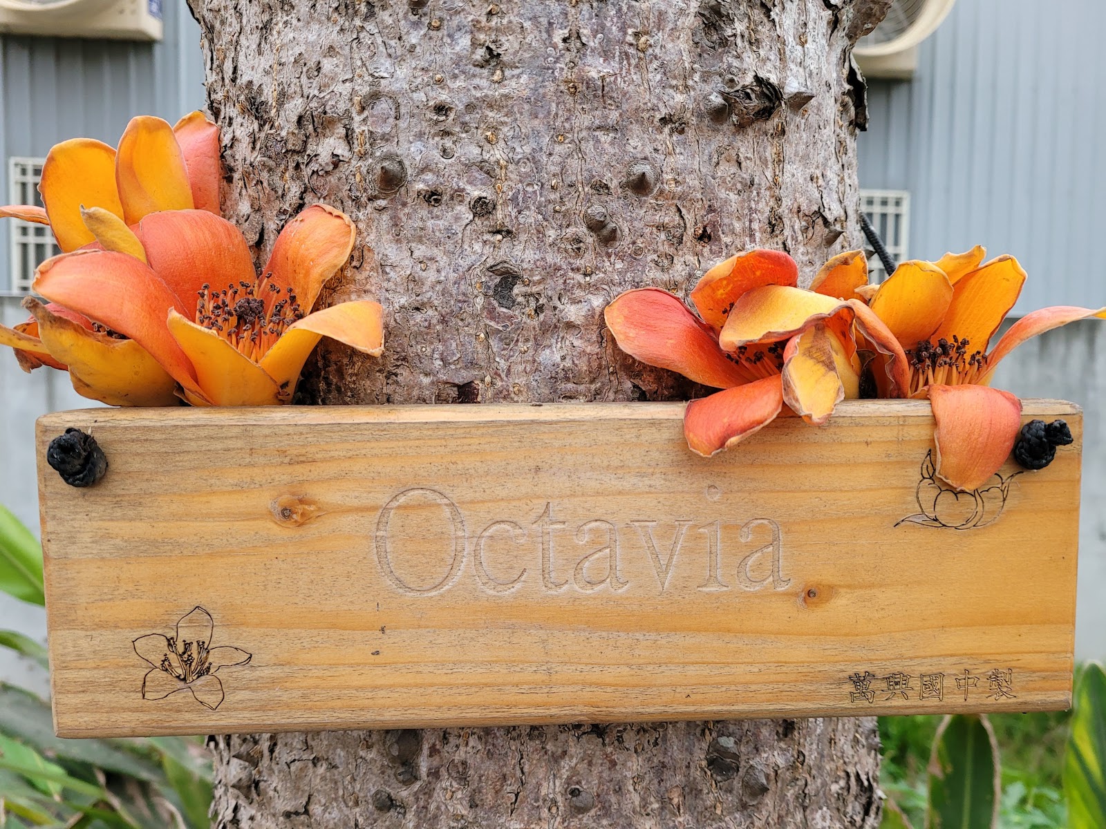 盛開的木棉花是橘紅色的