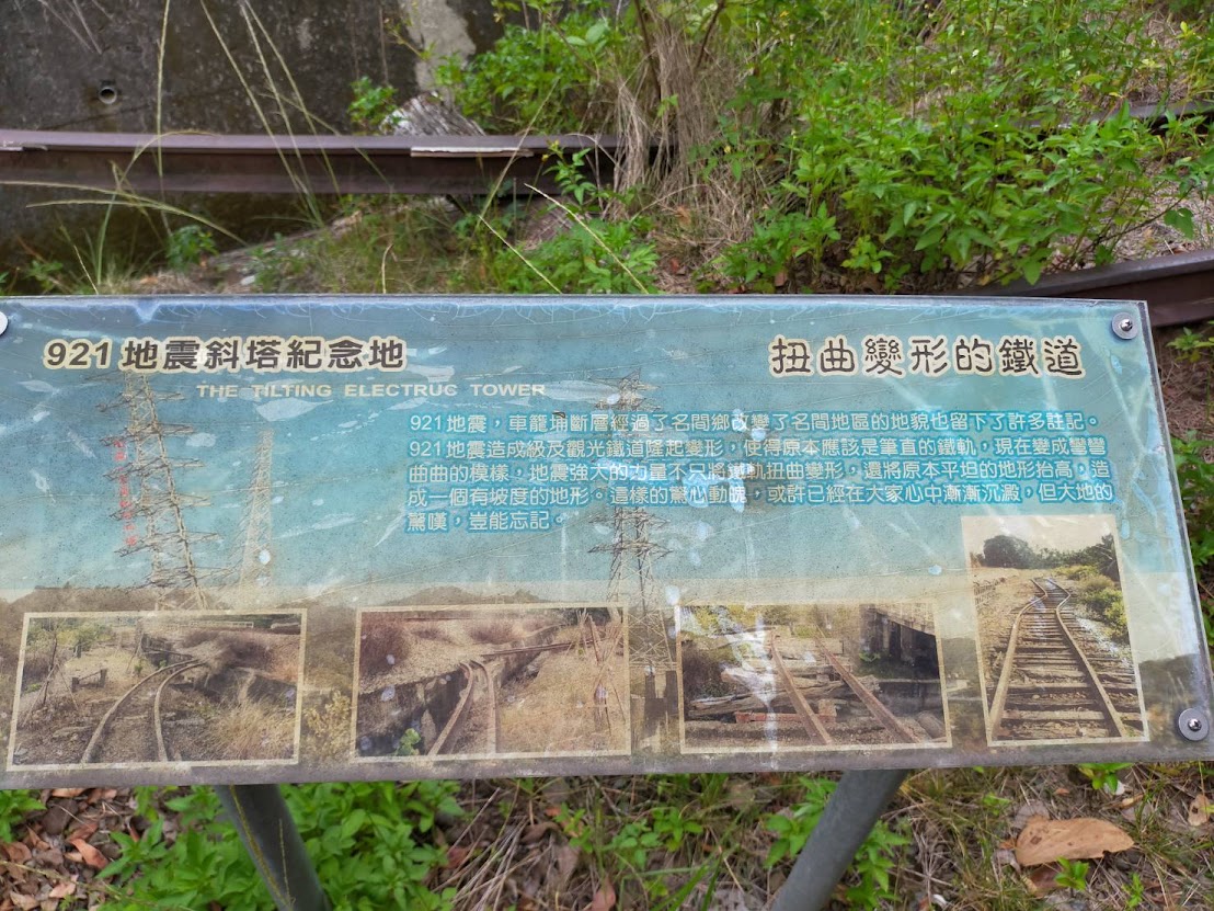 小時候來的時候,還可以走上去觀看保留在地面上被震歪的鐵軌,現在則是雜草叢生,根本無法靠近,只剩一塊斑駁的告示牌,根本無人維護的樣子