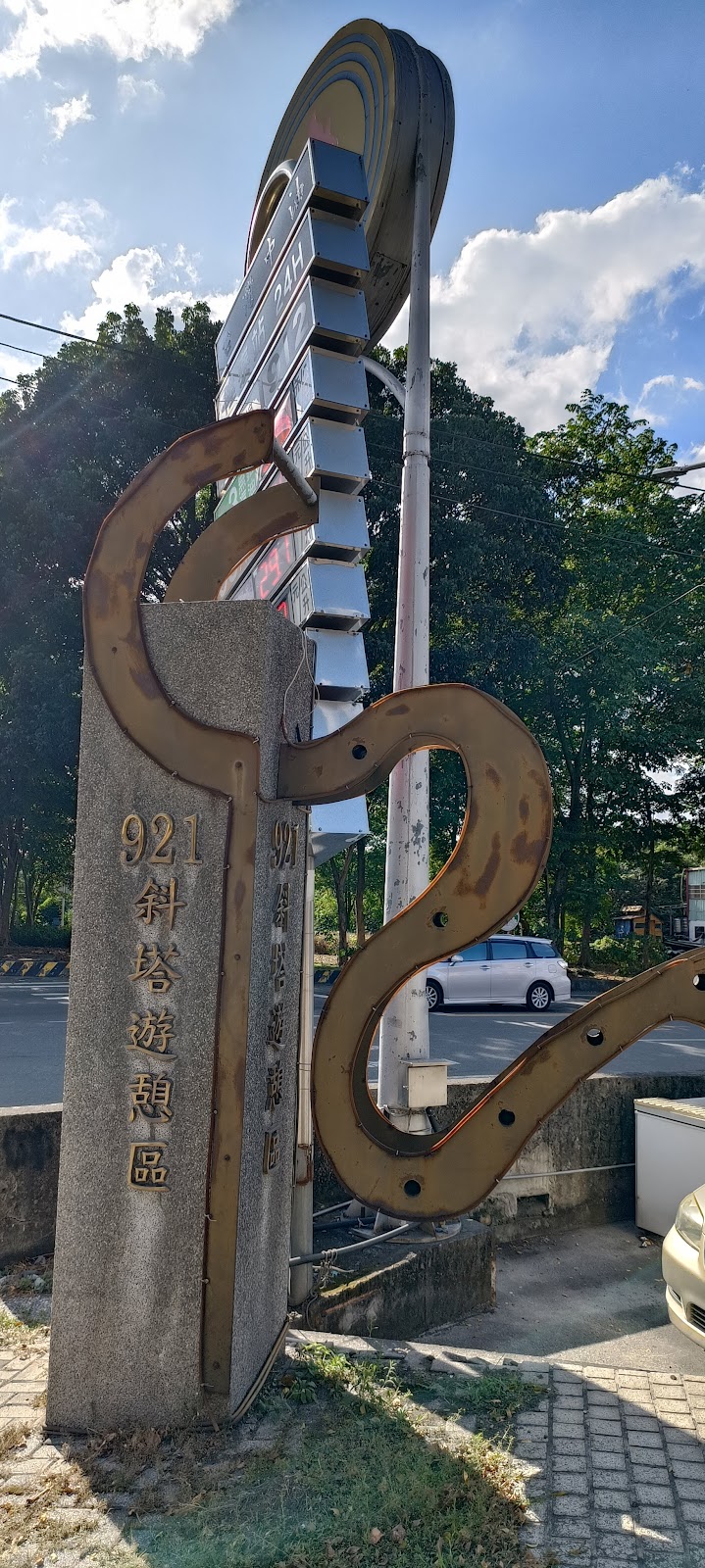 一旁就是全台唯一921紀念斜塔