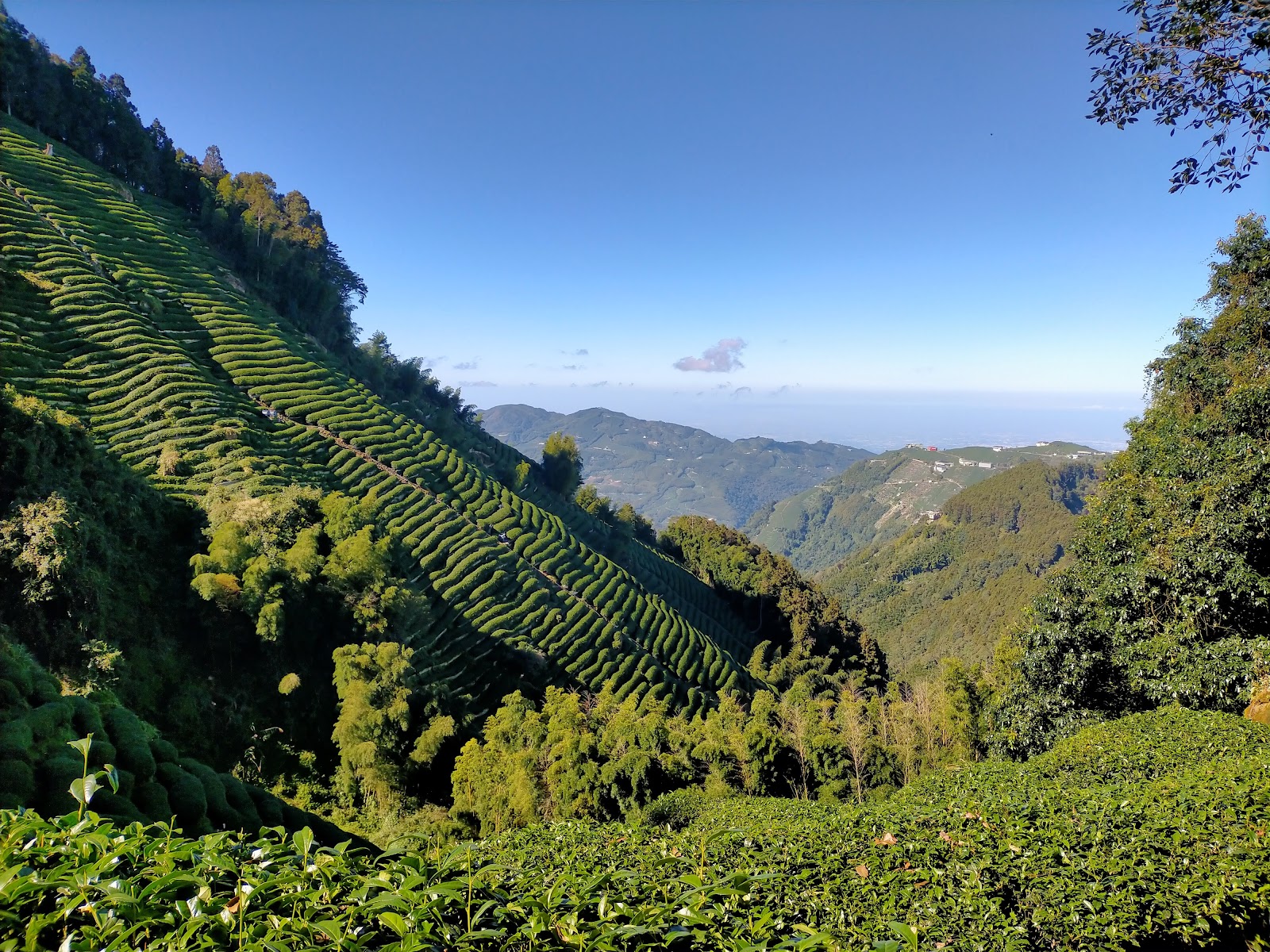 從這邊會經過忘憂森林,在回程陽光露臉後,景色不錯。再上去的茶園景色亦壯觀。最後段,才比較和緩輕鬆,約2小時到三角點。