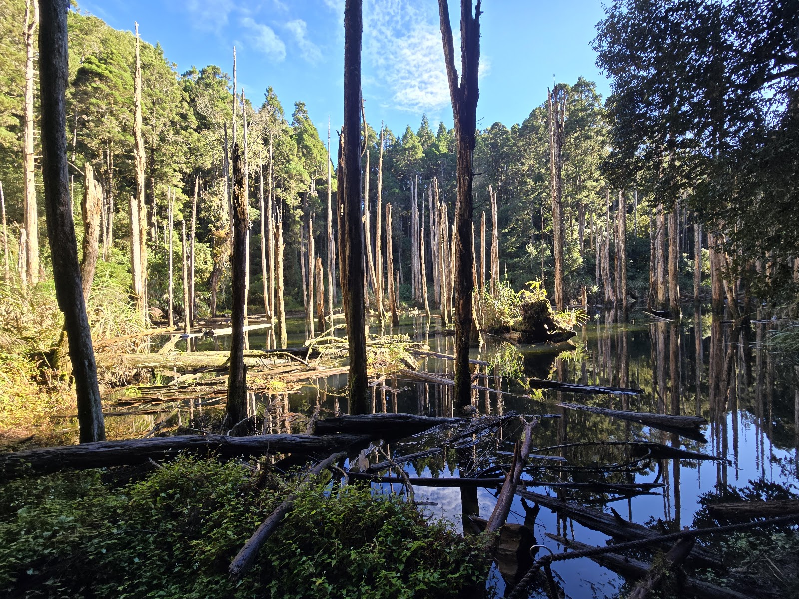下忘憂森林時須注意看好離線(魯)地圖,儘量走右側靠近忘憂森林的路徑為宜,左側路徑雖亦可通行,然顯因受去(113)年風災影響,許多倒木、五葉松覆蓋於原有路徑,除造成行進不易外,亦有岔往非適合行進路徑危險之虞,請山友們務必注意此點。