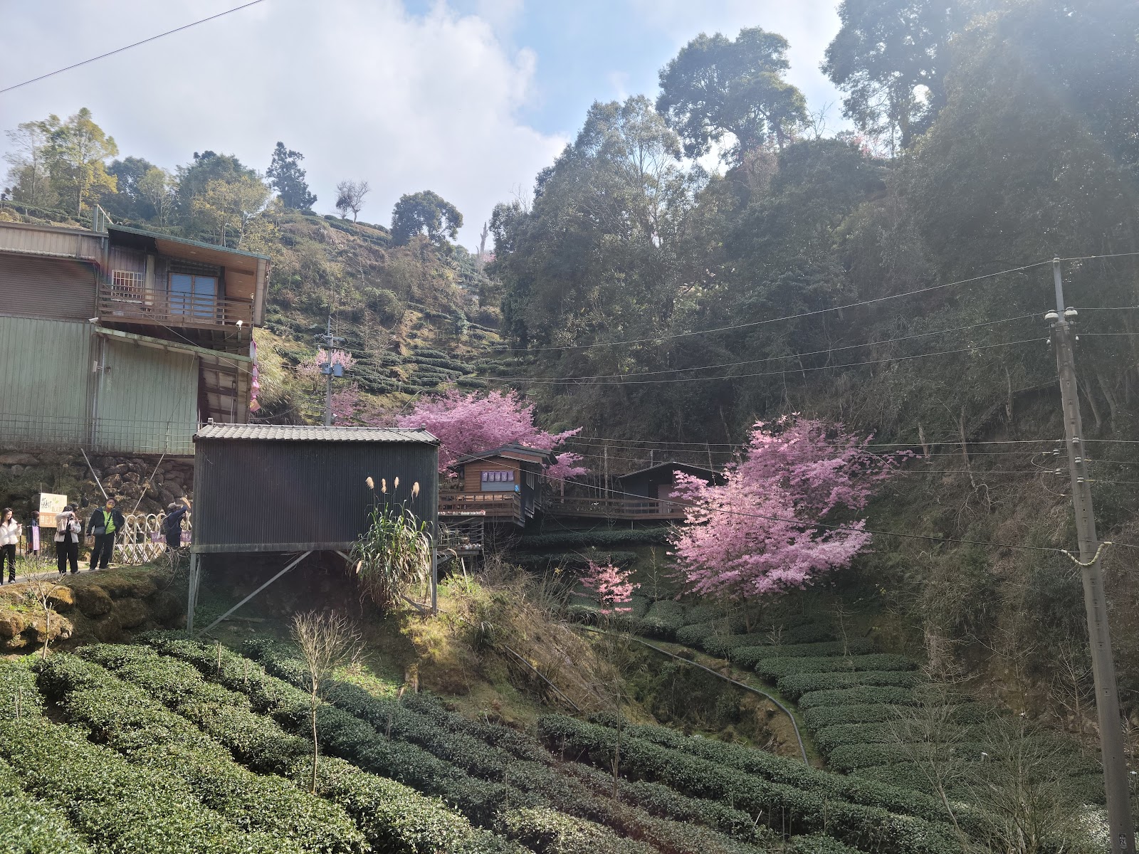 一行人約一點半到達,前後停留約一小時,山區逐漸起霧,來此觀賞美景最好上午到達,下午易起霧,若碰到大霧上下山皆有些風險,另我們選擇此家茶莊搭接駁車,因其腹地較寬廣好停車之故,此地景緻特別,有經過附近風景區可就近來感受不一樣的美。
