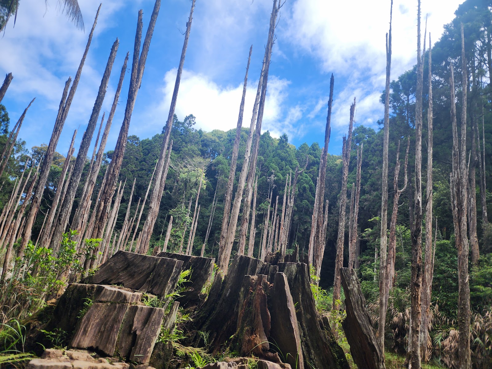今天終於抵達忘憂森林,聽接駁的司機說,已10天沒下雨,現場所見是乾涸樣貌的枯木群。
