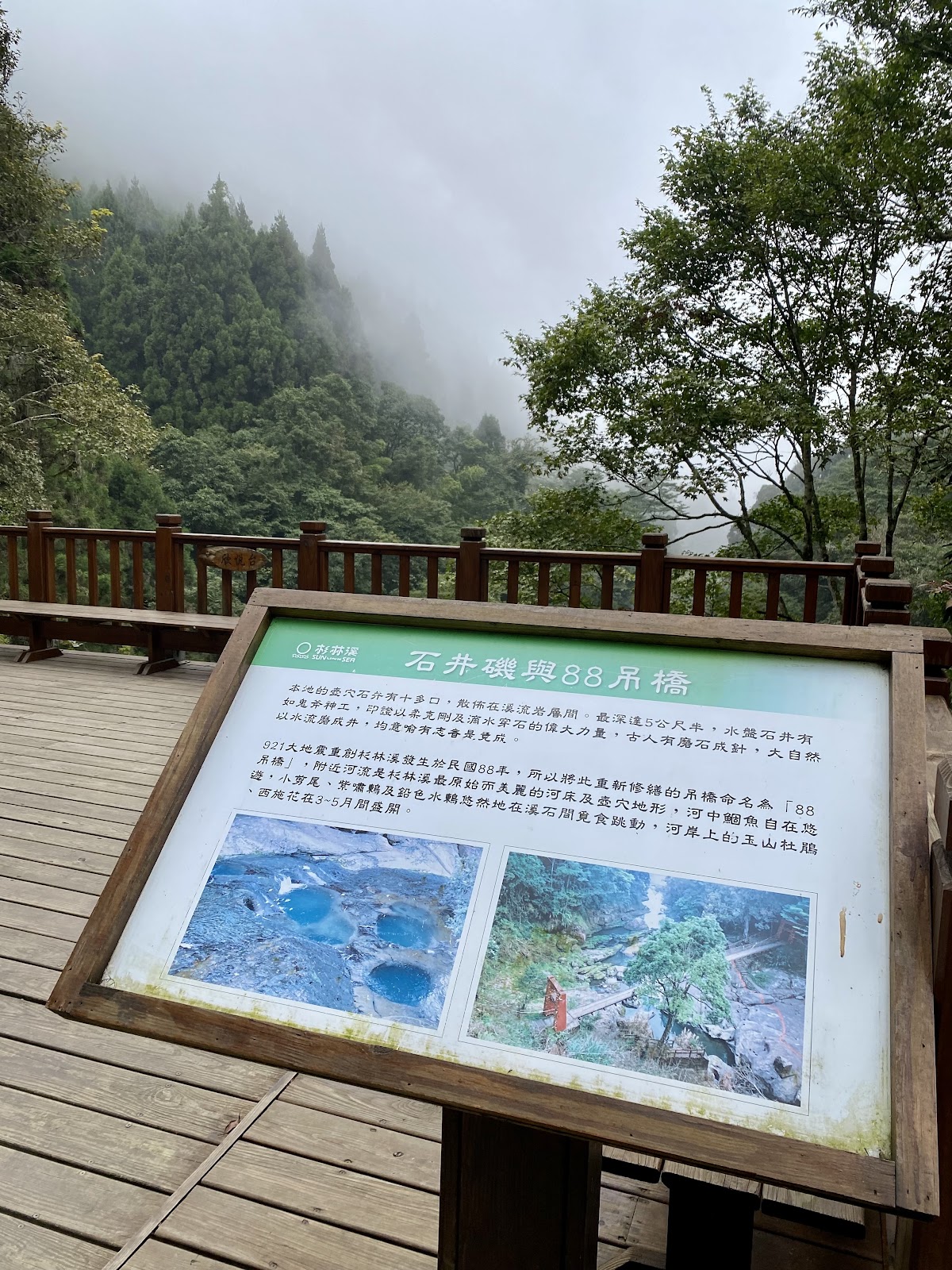 杉林溪十條步道中我覺得最值得走的,整條步道只有800公尺,平穩好走沒有上坡下坡,如果想要看到起霧的石井機可以等下午再來比較有機會,也可以搭配青龍蕨類步道走一圈回來