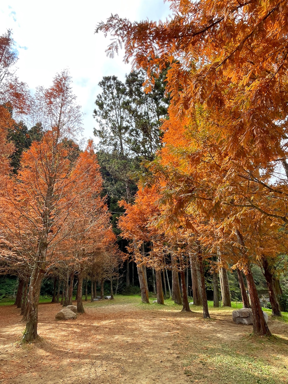 水杉區以我個人到場實拍結果,目前整體僅2-3成的變黃,只有某幾株已變橘,因此給了三星🌟,至少還需要2-3週才會滿變色,特此提供給預計來觀賞的遊客參考,只能說網路上廣告都言過其實,並未給予真正的參考憑據,可惜了…