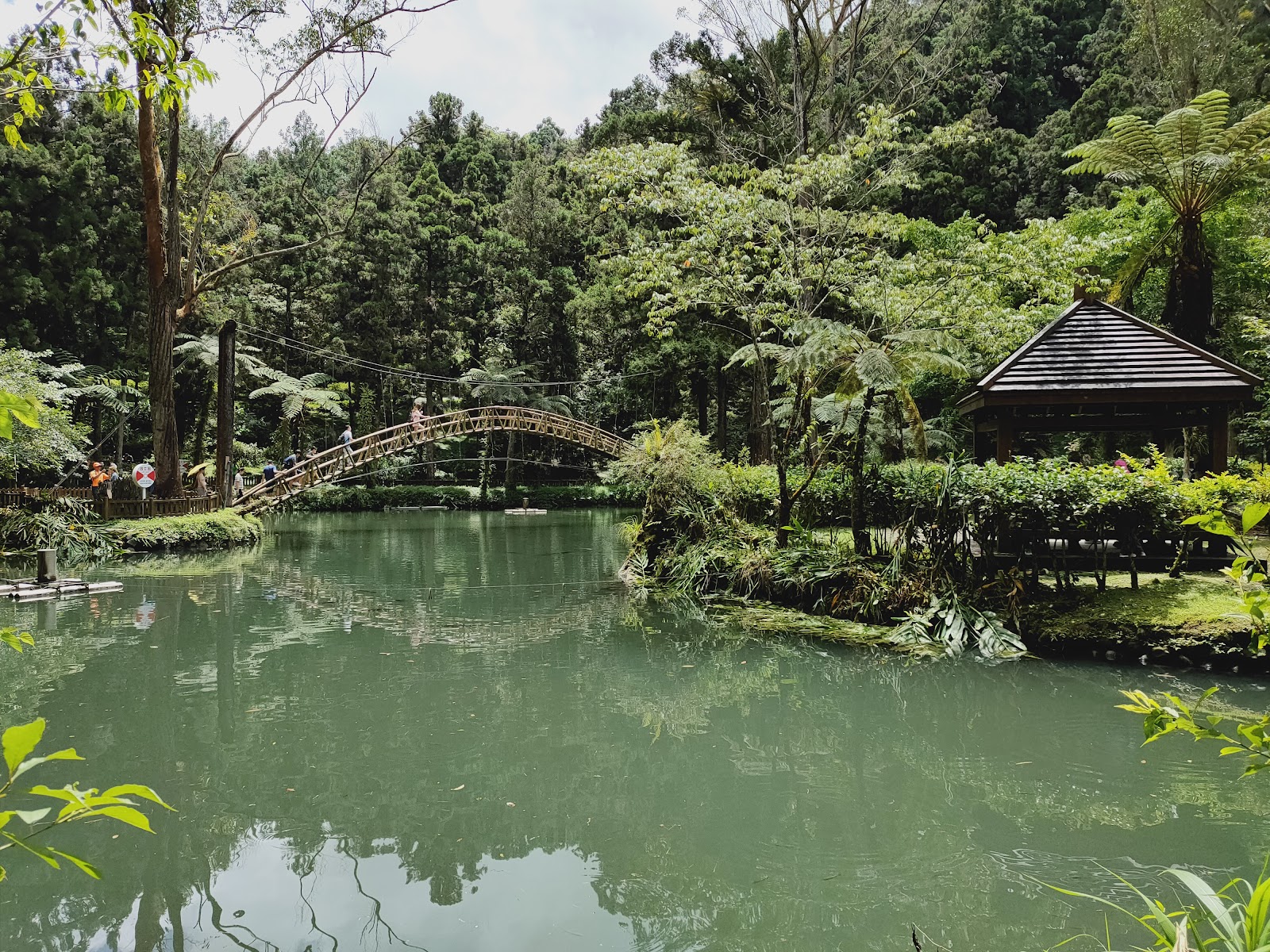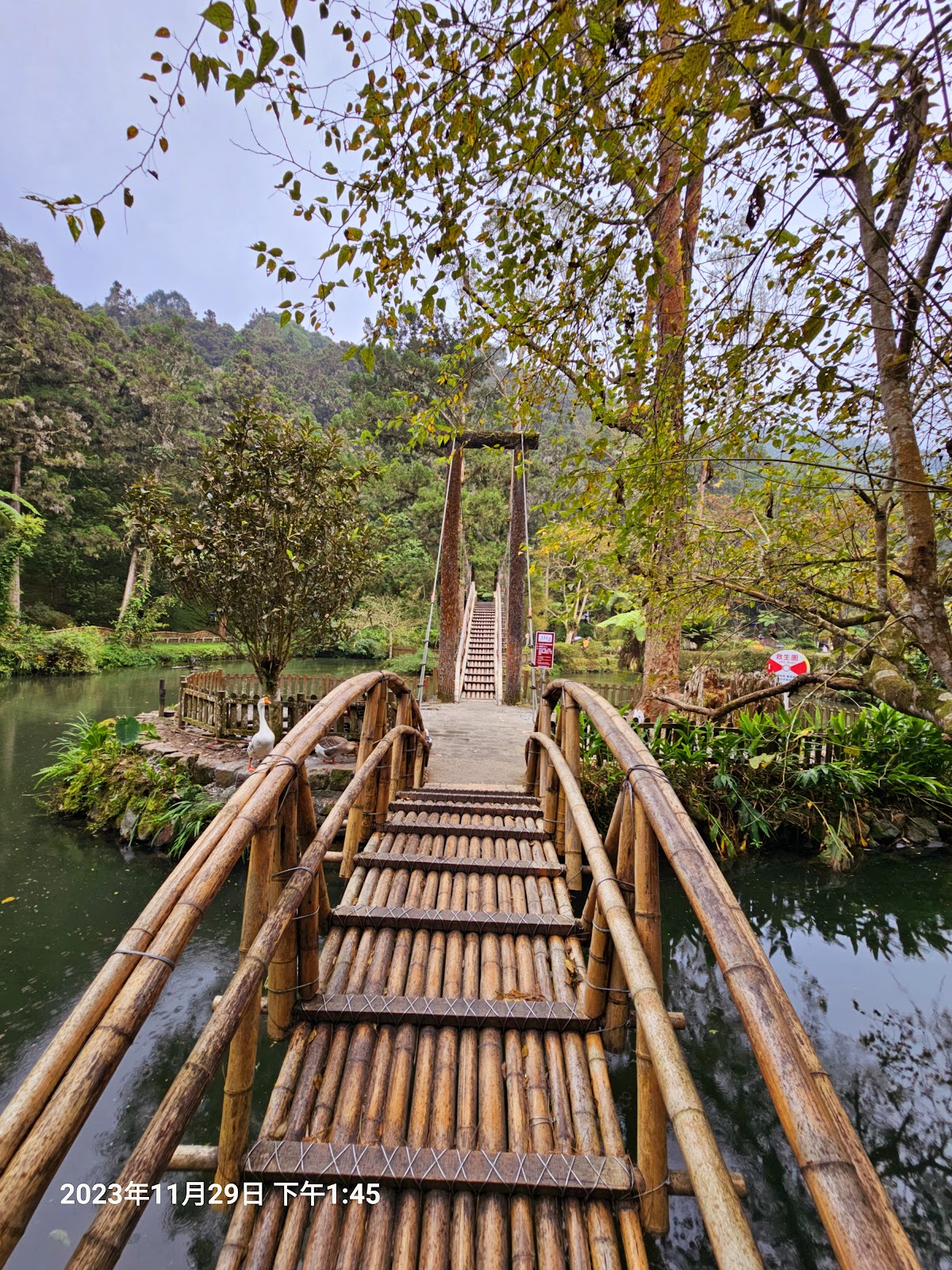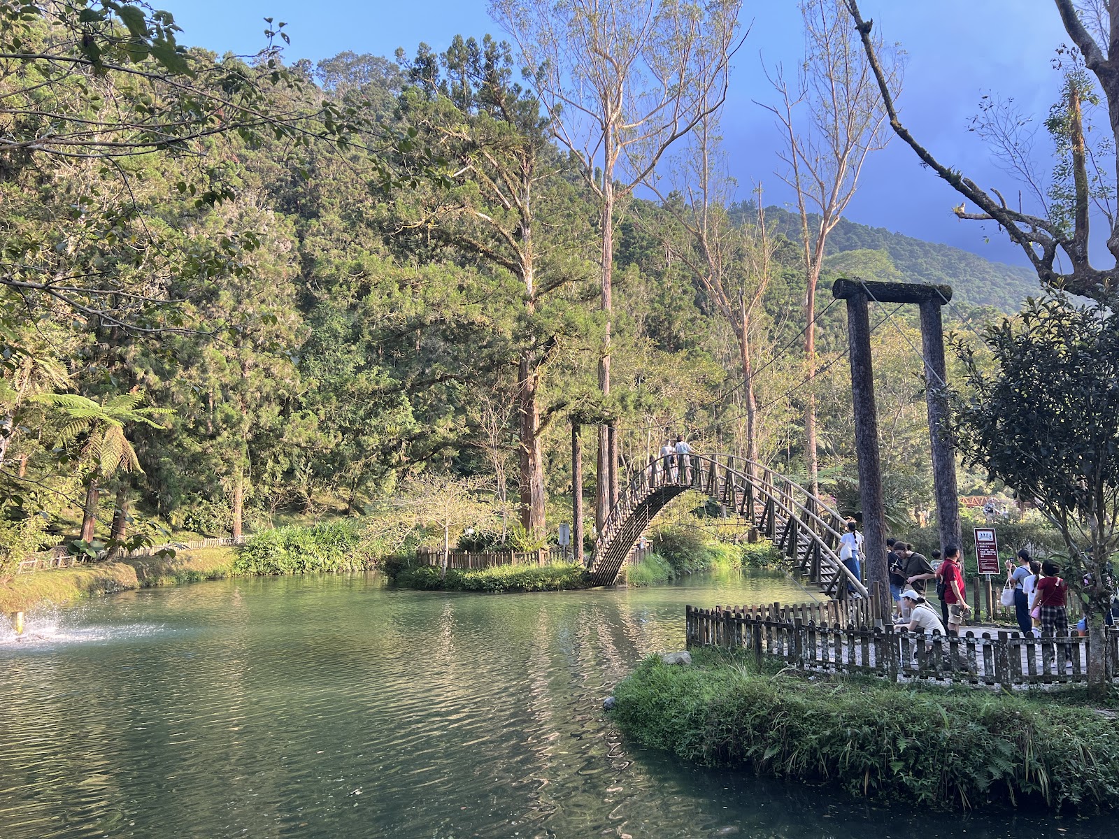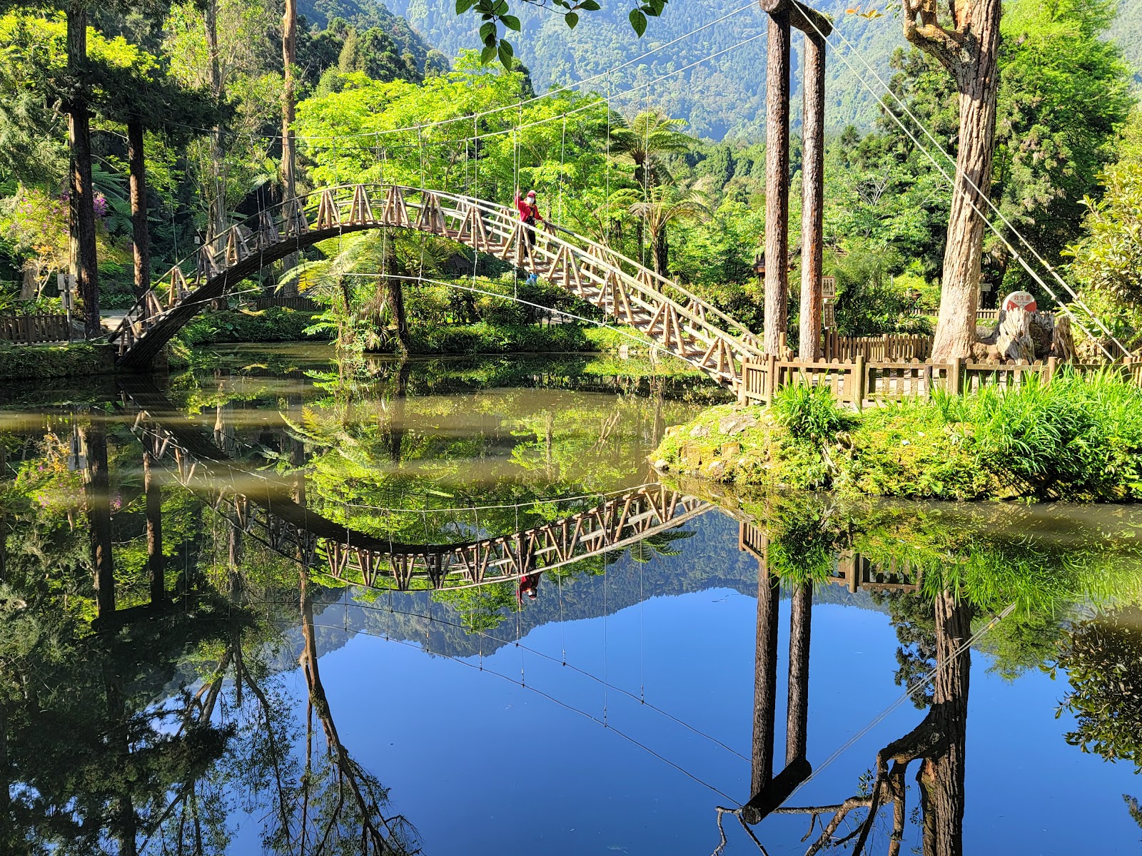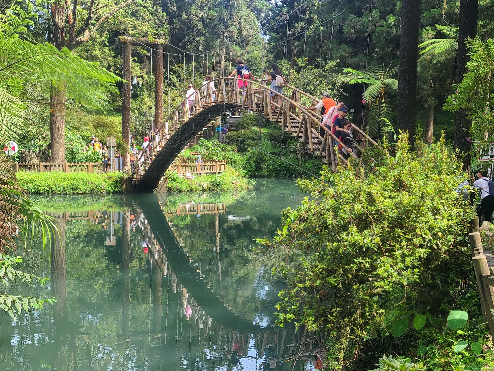 橫跨池畔兩邊,可供遊客緩步攀登通行