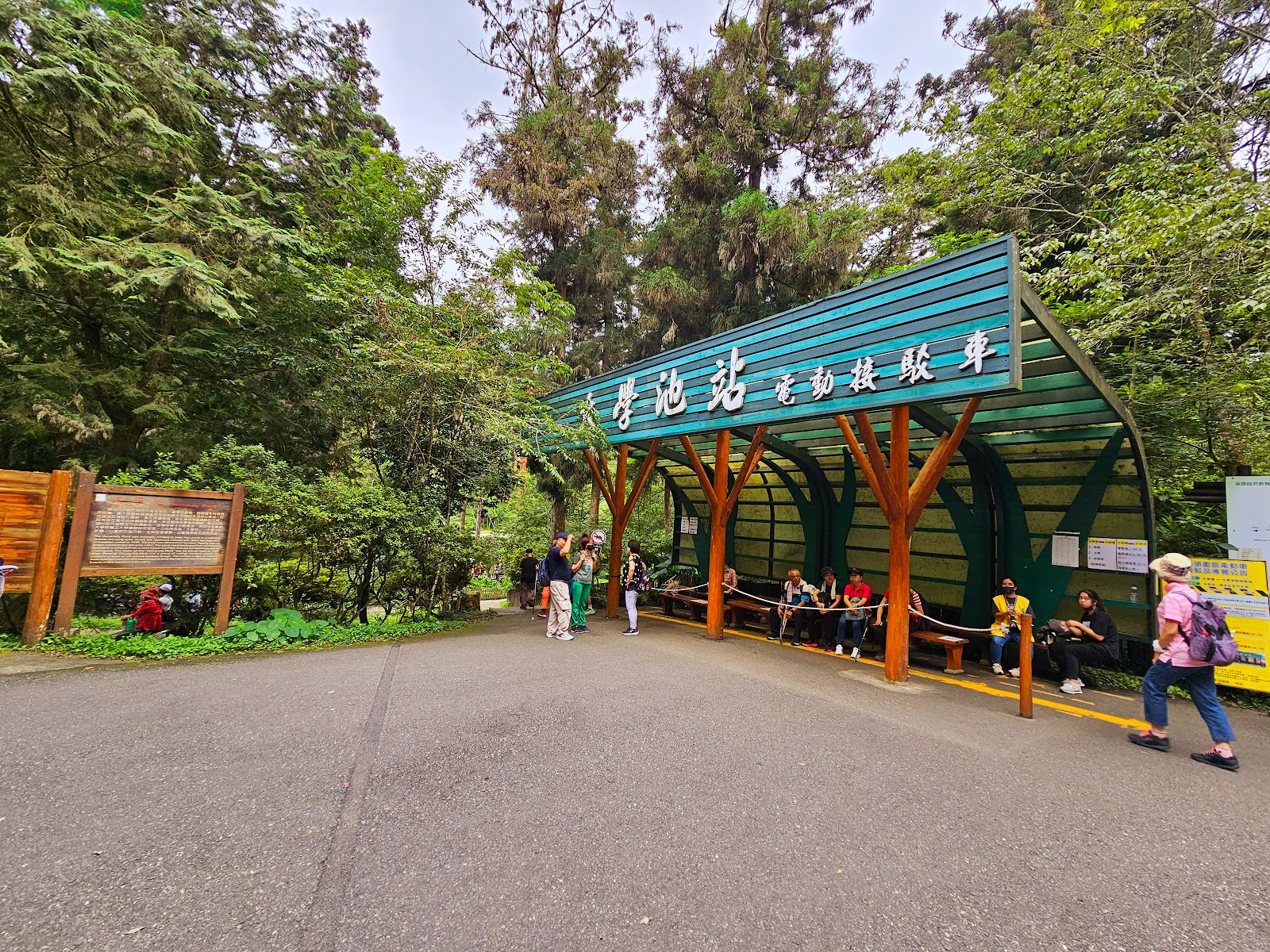 溪頭人潮聚集處,有賣吃的,有廁所,可搭遊園車到此處