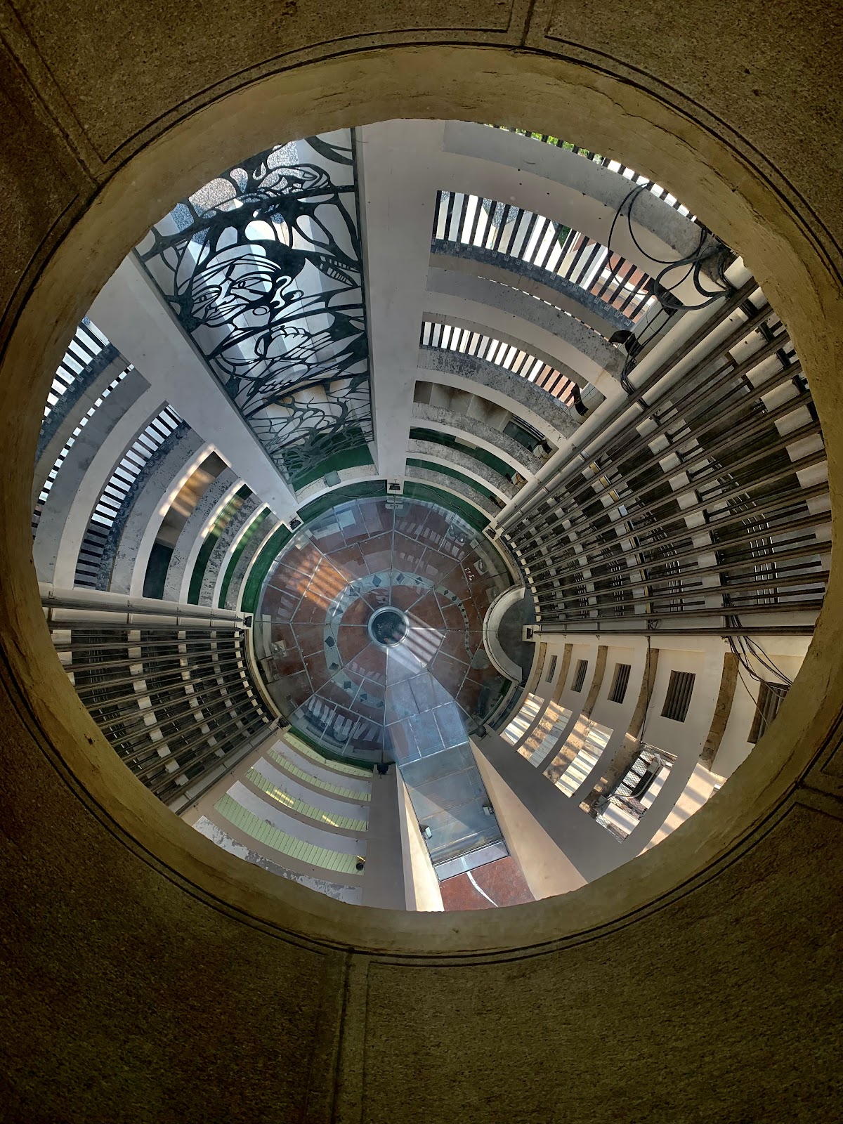 電梯只能搭到10樓,會先看到一些畫展跟地板上的透明玻璃,可以從地板直接看到一樓。