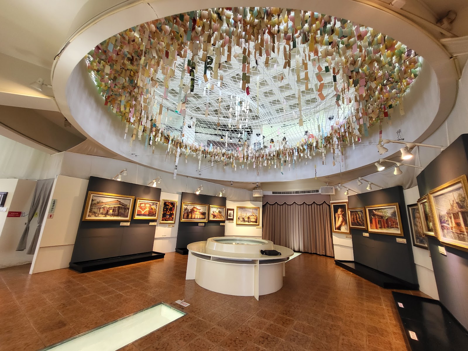 這裡還有一個11樓比較看不到的特色就是位於展區中央的「一線天」,雖然四周都掛滿了筆墨作品但透過強化玻璃可以讓視線直通一樓,讓參訪者增添不同的「空間感」也算是樓層亮點之一。