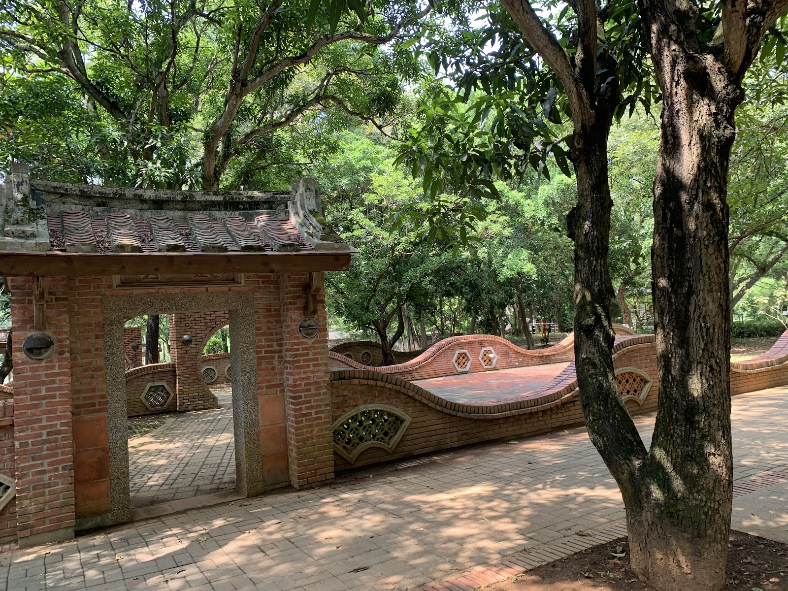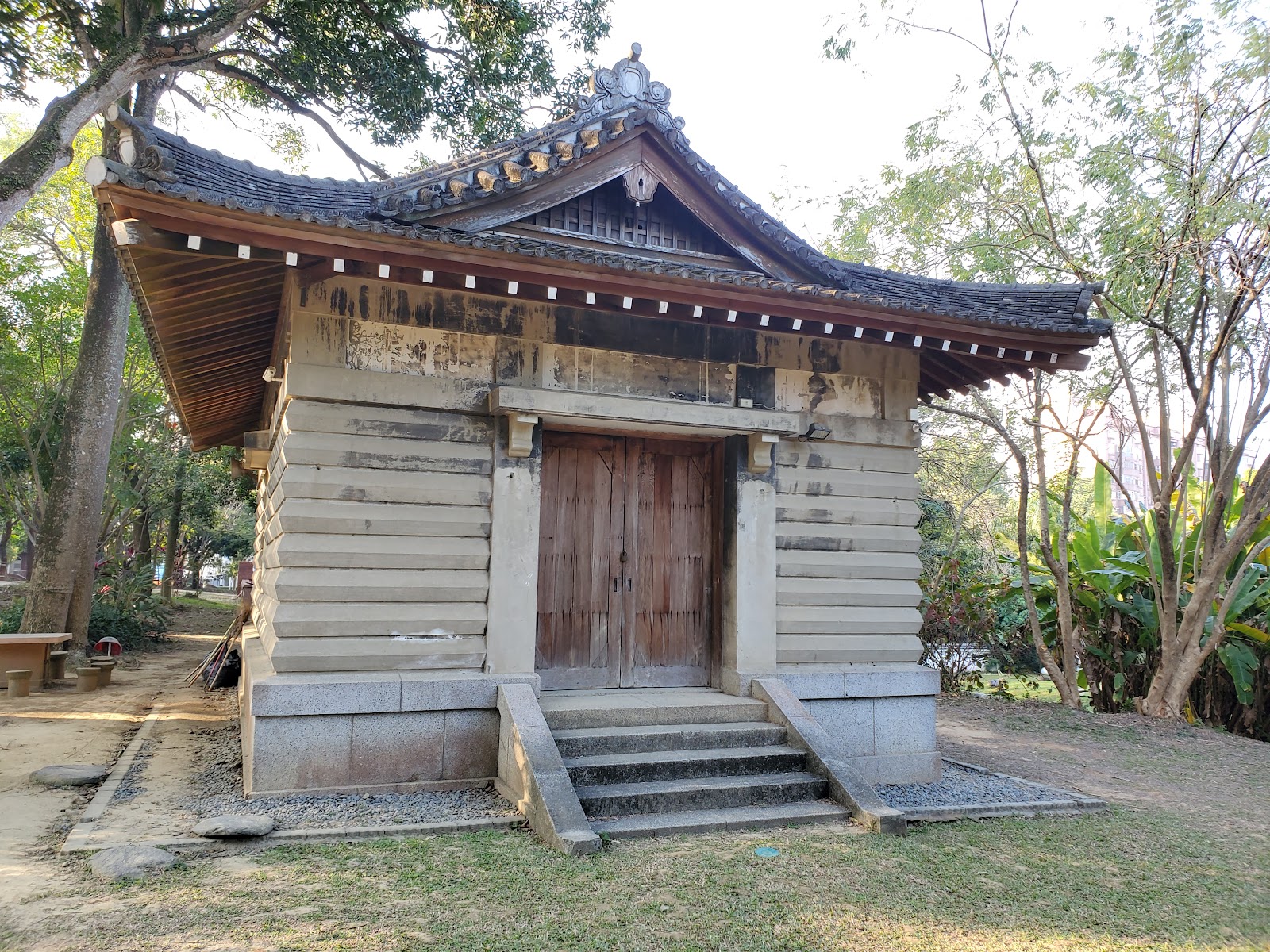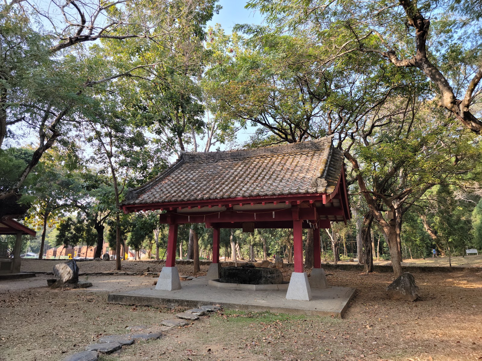 抵達時公園與腹地比我們想像的大,不論涼亭、牌樓還是手水舍等建物,你可以發現融合了傳統古典風格與日式神社於其中,建築雖然留有著歷史痕跡但卻保留相當完整。