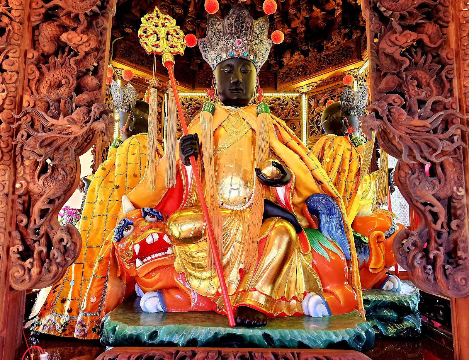 除了主殿外,廟區還設有觀音殿、彌勒佛殿與祖師殿等,層層疊疊建築錯落有致,園區內部整潔且環境綠意盎然,是一個能夠放鬆心情、沉澱思緒的修行之地。最特別的是後山的地藏寶塔與「幽冥教化地宮」,設計象徵引導亡靈超度與警醒生者行善,極具教育與宗教意義,也是許多遊客必訪的一區。