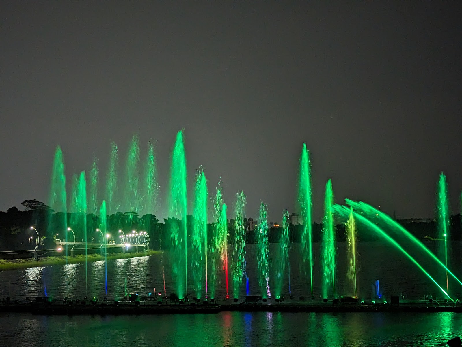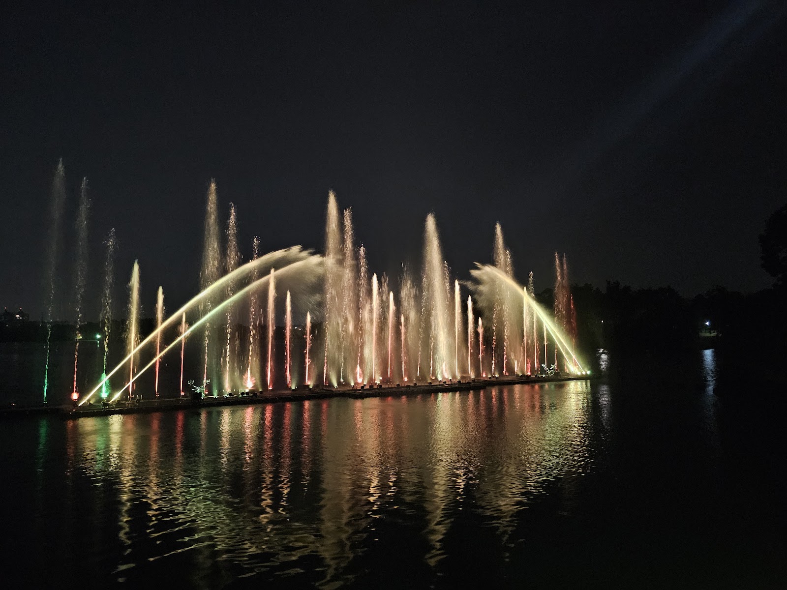 來的時間點真是太棒了👏遇到水舞在演出,順便就坐下來欣賞美麗的水舞囉!旁邊還有街頭藝人表演,可以聆聽美妙的歌聲,人潮沒有很多,心情很放鬆,環境有一點幽暗,建議可以多一點人來比較安全喔!