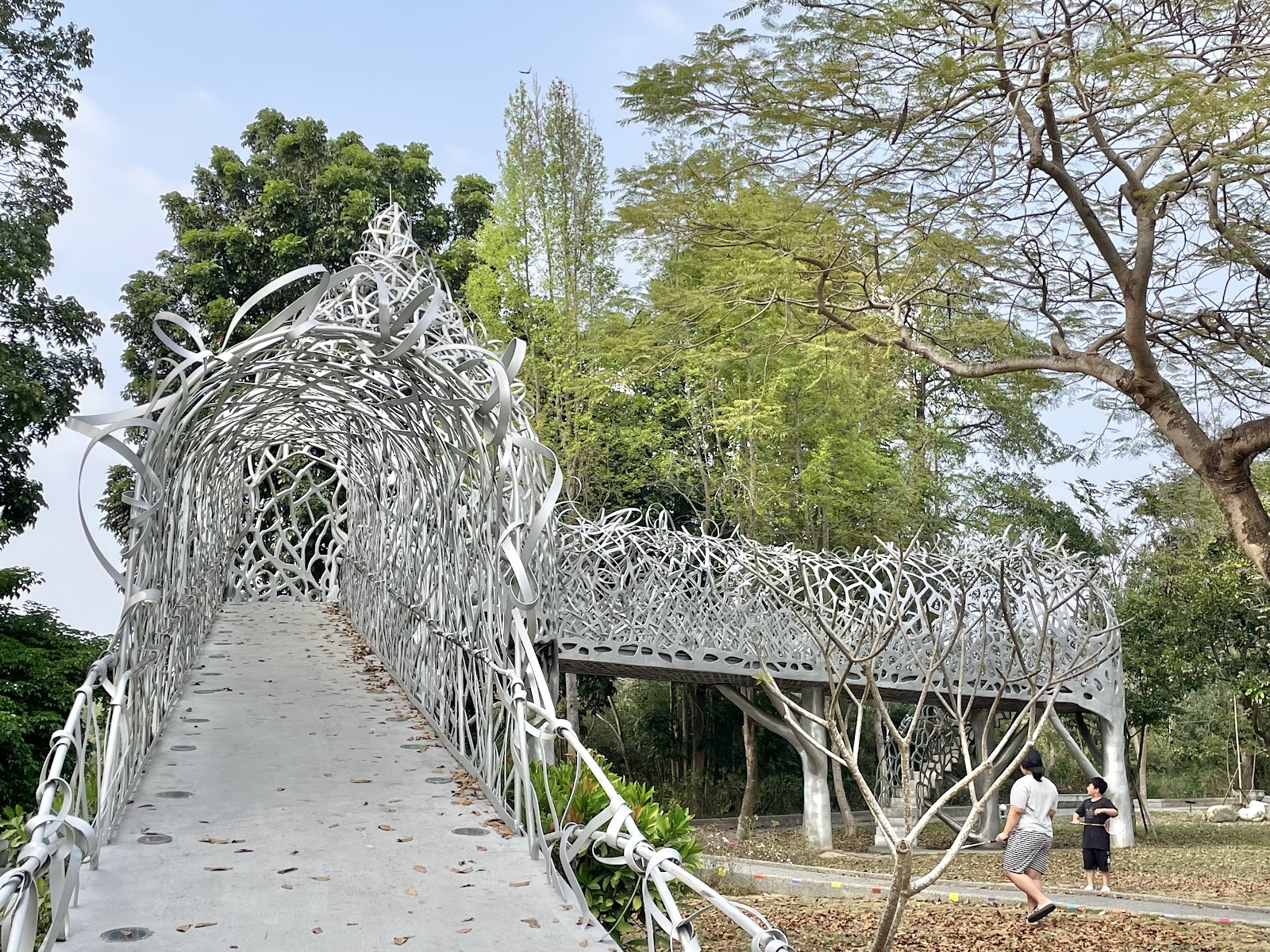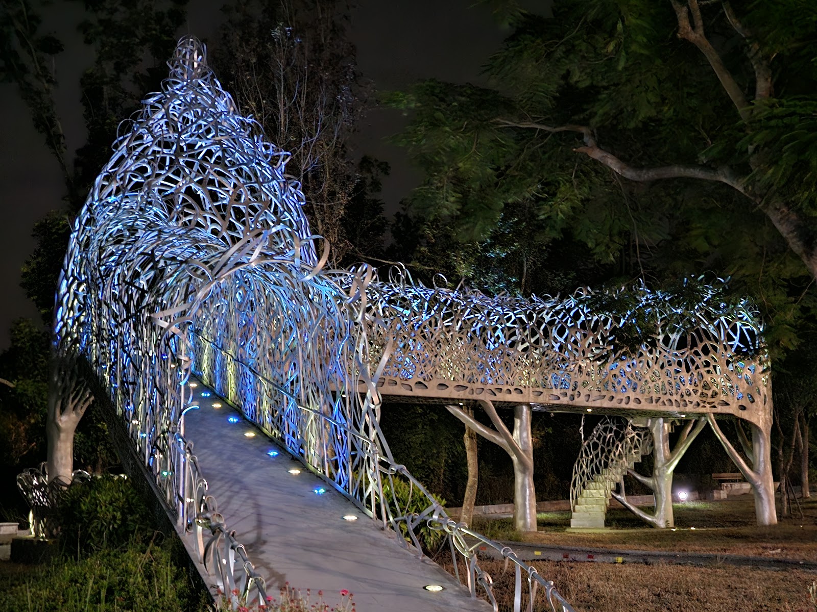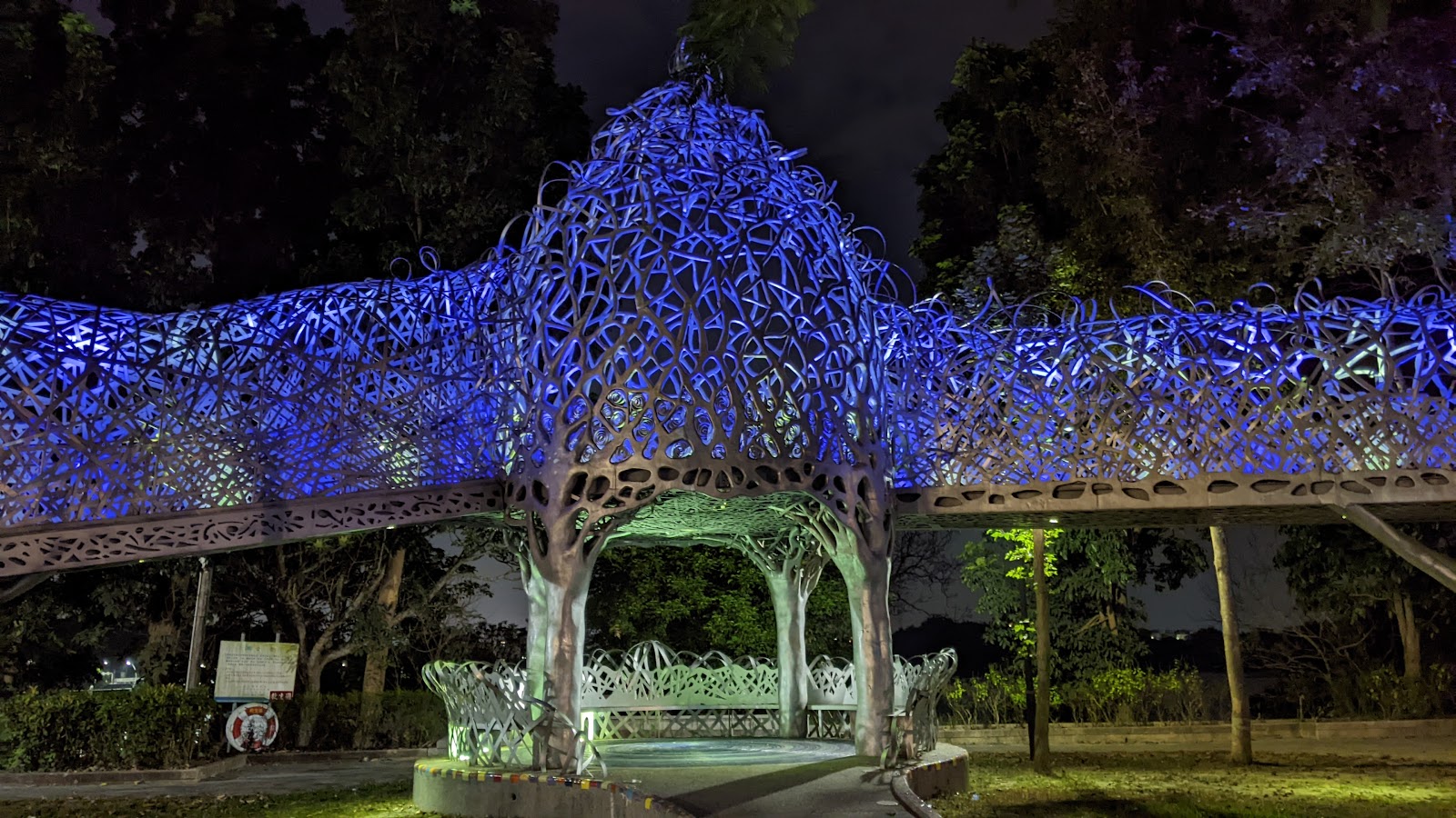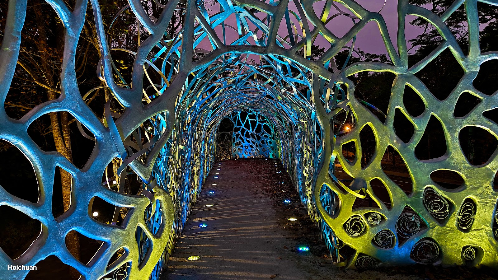 這裡的可看之處,就是它在夜晚點燈後的夢幻樣貌!🌃 整座裝置藝術會亮起七彩繽紛的燈光,而且還會不斷變換顏色,光影在編織的縫隙中流轉,真的非常迷人!😍 走在其中,感覺既浪漫又充滿未來感,氣氛營造得非常好。不過,它就是一個純粹的「景點」,除了拍照跟散步之外,沒有其他的活動,是比較可惜的地方。🤔
