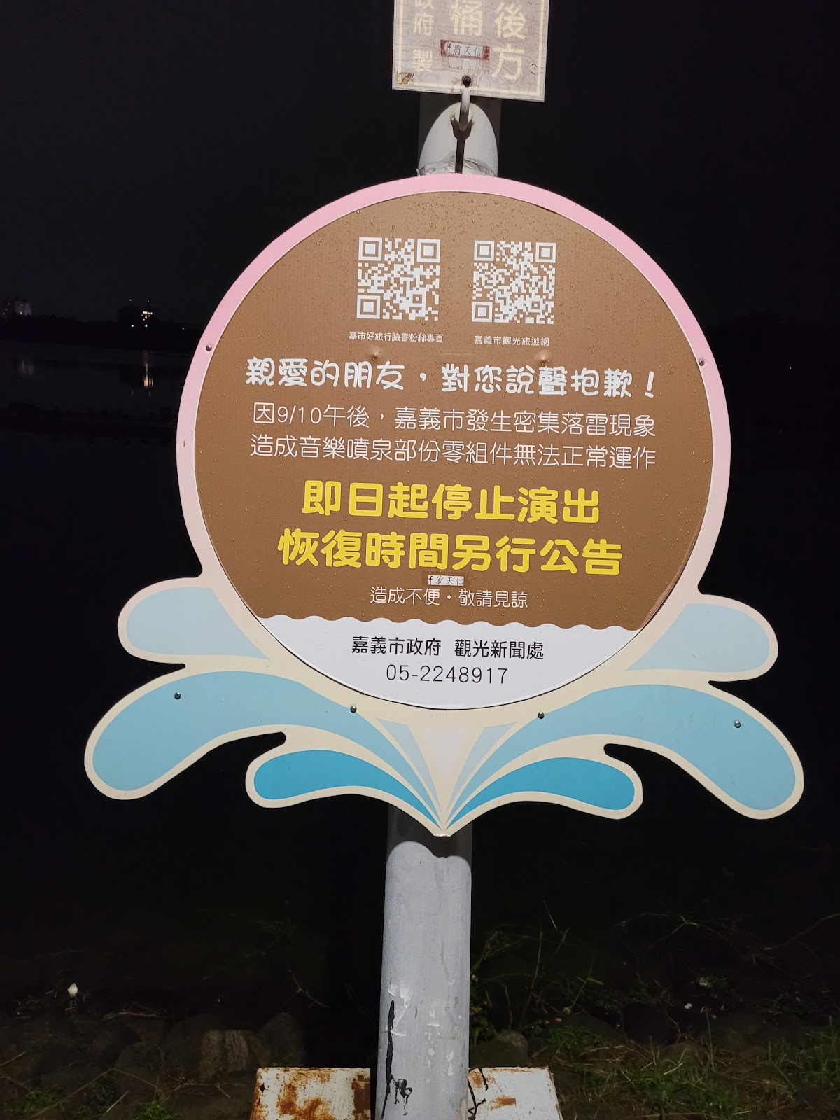 剛入春不久傍晚時分 在這看夕陽等水舞真的不錯後面就有廁所也有嘉義大學的小7。真的很悠閒