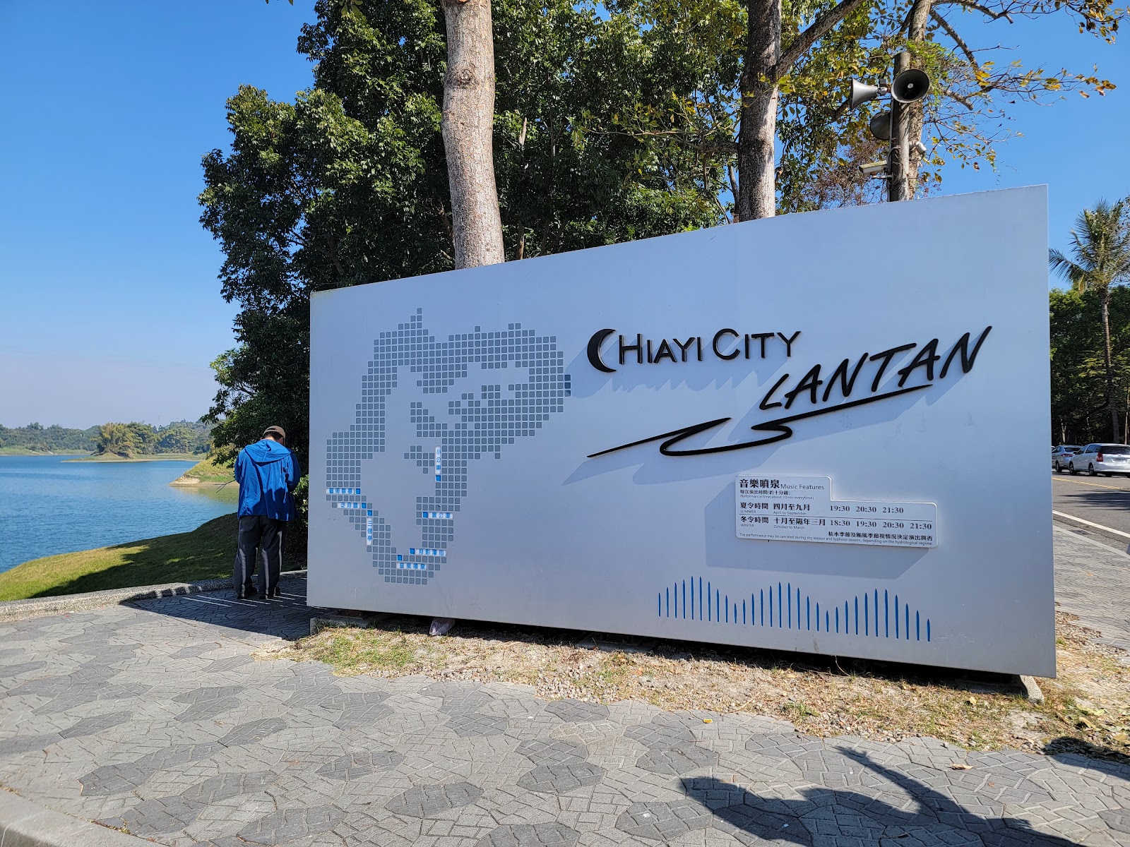 蘭潭音樂噴泉是目前國內最大型的常設性音樂噴泉演出設施 演出時間分為4至9月夏令時間19:30 20:30 21:30 演出三個場次 與10月至次年3月冬令時間加碼18:30 演出四個場次 每場次均會演出三首曲目共計10分鐘