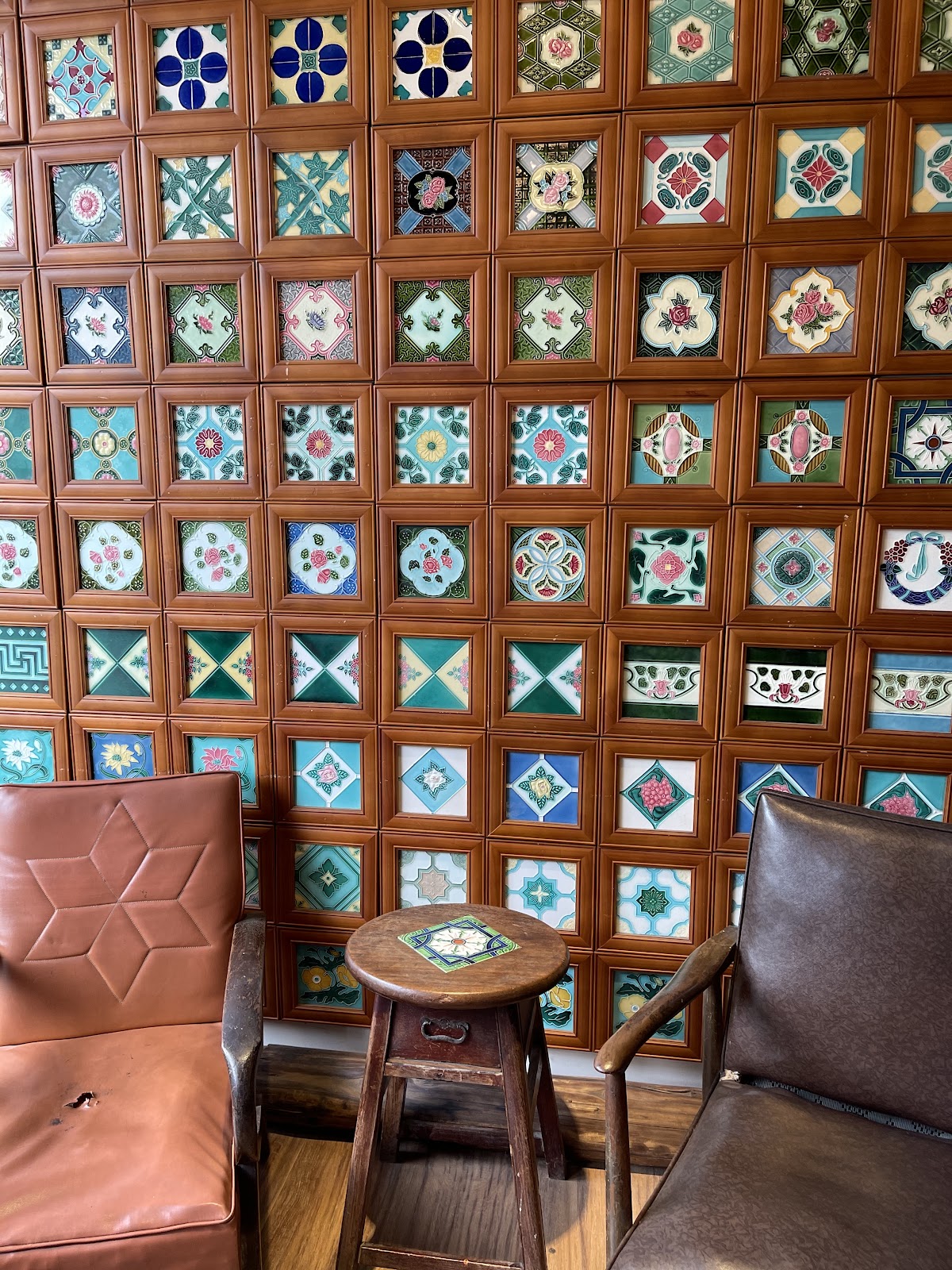 一樓花磚牆:色彩繽紛、排列壯觀,是全館最吸睛的亮點,站在前面彷彿置身老宅時光。